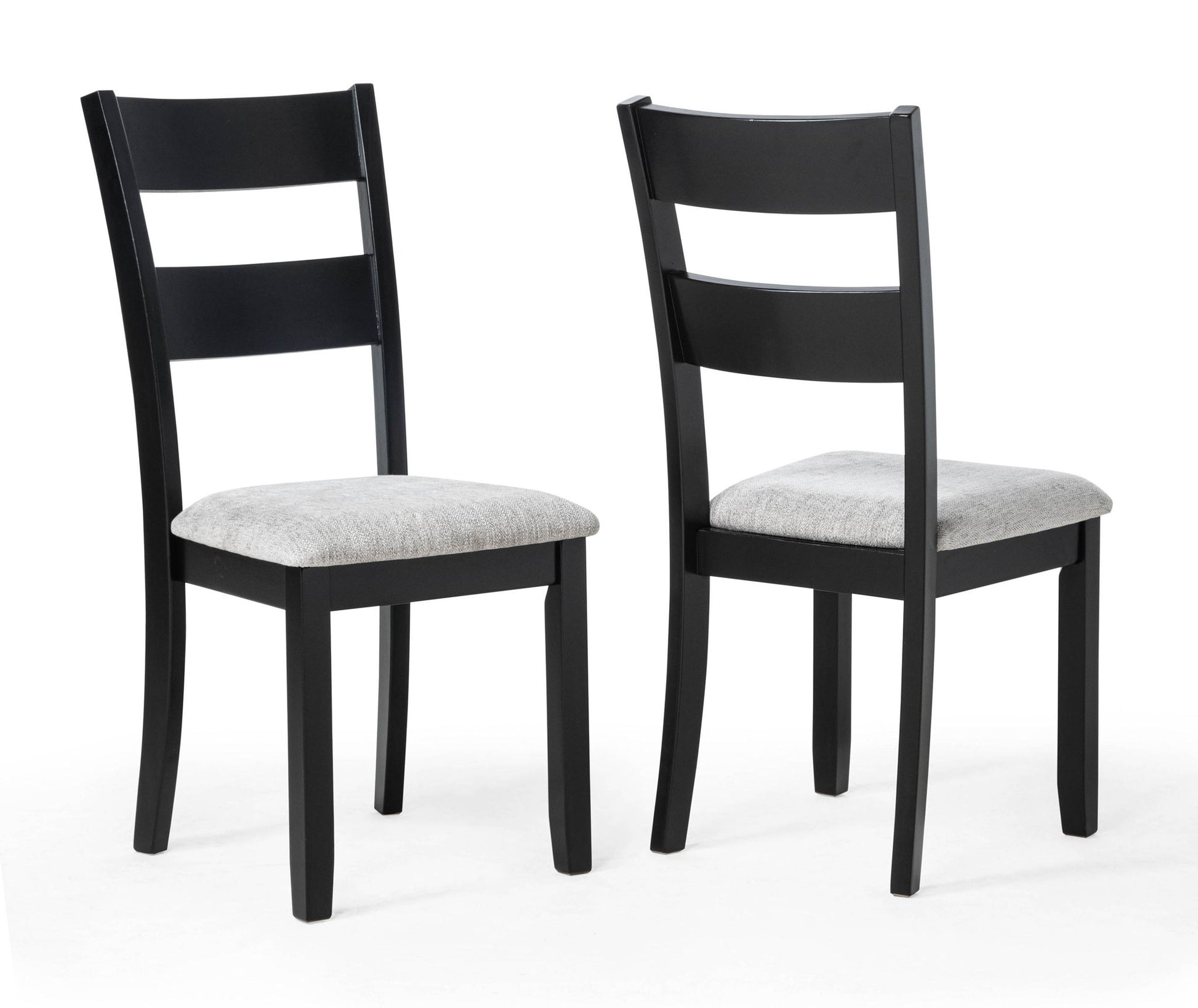 Simple yet stylish, this dining group offers a clean, modern look with everyday functionality. The rectangular table features a weathered gray finish that highlights the wood grain, paired with a contrasting dark frame for a contemporary two-tone effect. Coordinating chairs and a bench showcase wide slat backs and padded seats upholstered in a textured neutral fabric, delivering comfort with a streamlined design. Perfect for casual family meals or relaxed gatherings, this set brings a fresh and versatile presence to any dining space.