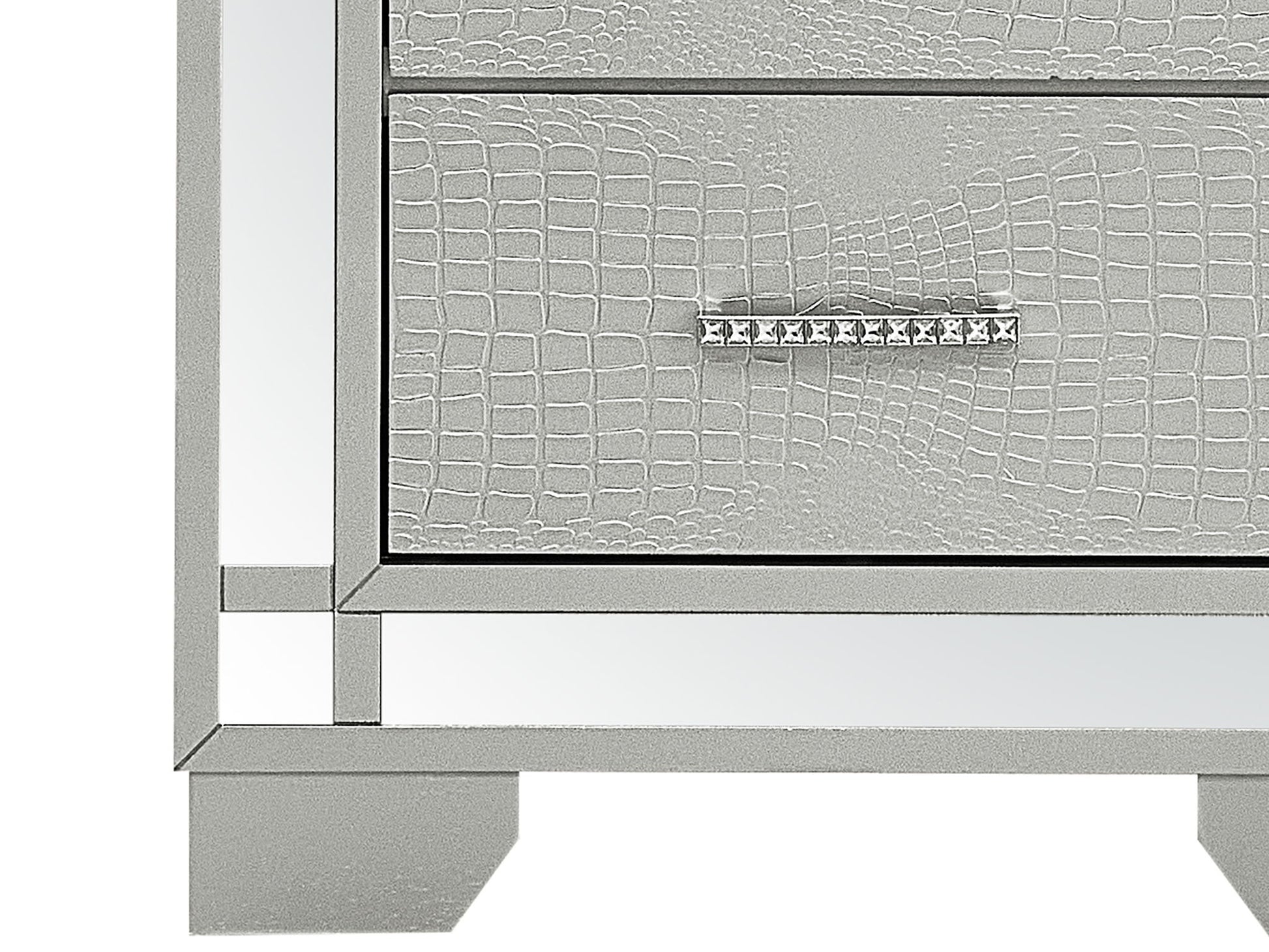 This chic furniture piece in Silver Champagne stands out as a versatile addition to any home, designed to integrate smoothly with various decor styles. The unique textured 'Croc' finish not only provides a modern aesthetic but also enhances its durability, ensuring it remains a favorite for years to come. Its captivating look invites compliments while serving its essential purpose. With overall dimensions of 26"H x 23"W x 17"D, this piece is an excellent selection for those looking to incorporate storage solutions that are efficient without overwhelming their surroundings. Its compact size is well-suited for positioning in living areas, bedrooms, or entryways, adding a touch of sophistication wherever placed. Featuring a blend of functional elements and decorative charm, this furniture piece effortlessly enhances your space, promoting organization without sacrificing style. It transforms your environment, offering functional storage while making a significant visual impact.
