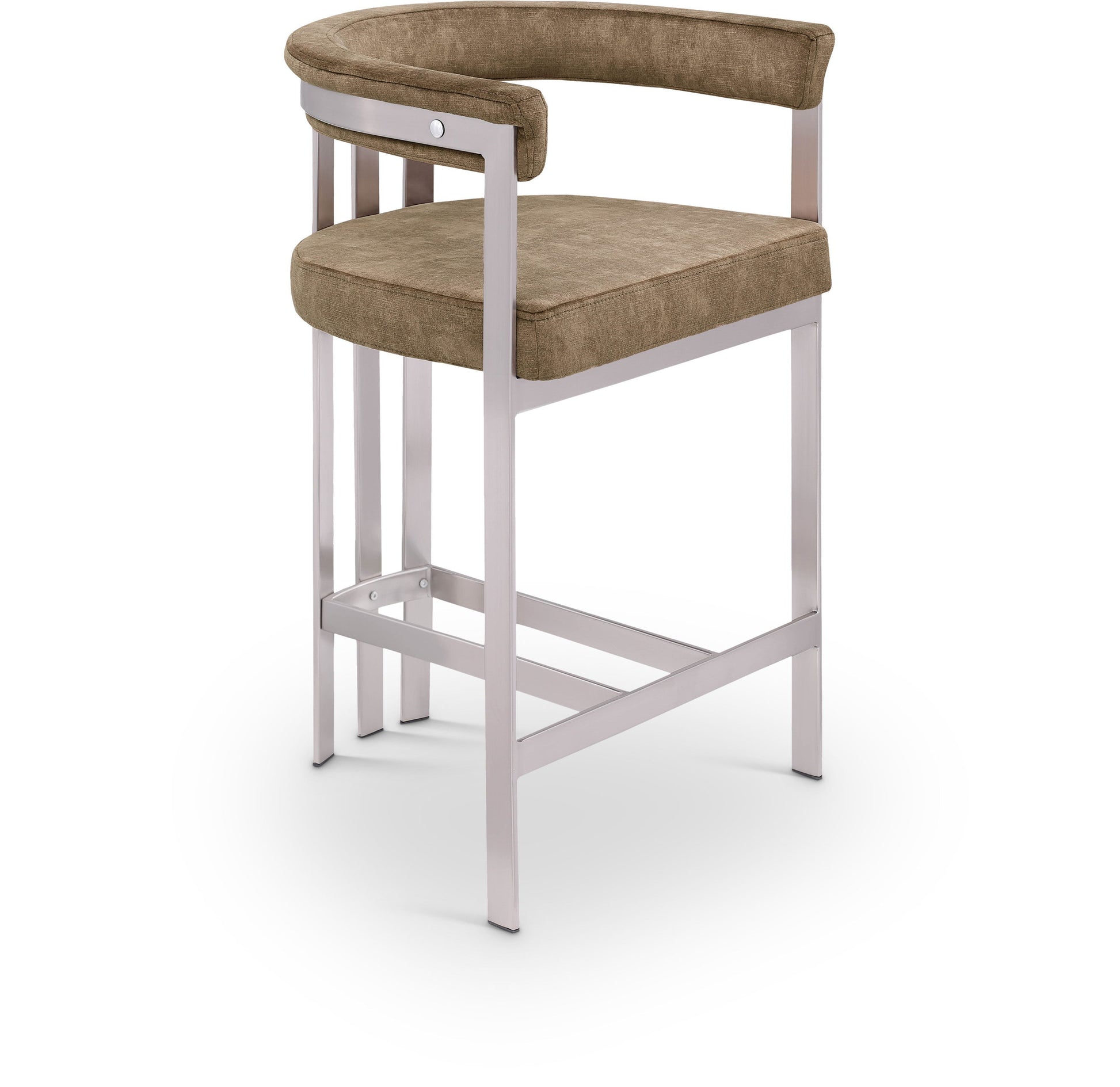 Turn your dining space into a contemporary haven with this Marcello beige velvet counter stool. Its soft, high-end velvet is soft for you to sit on, while its brushed chrome iron frame ensures durability for years to come. Its curved back provides support while you sit and enjoy your meal, so your back won't get tired or hurt while you eat. Its curved, contemporary design is perfect for any modern home.