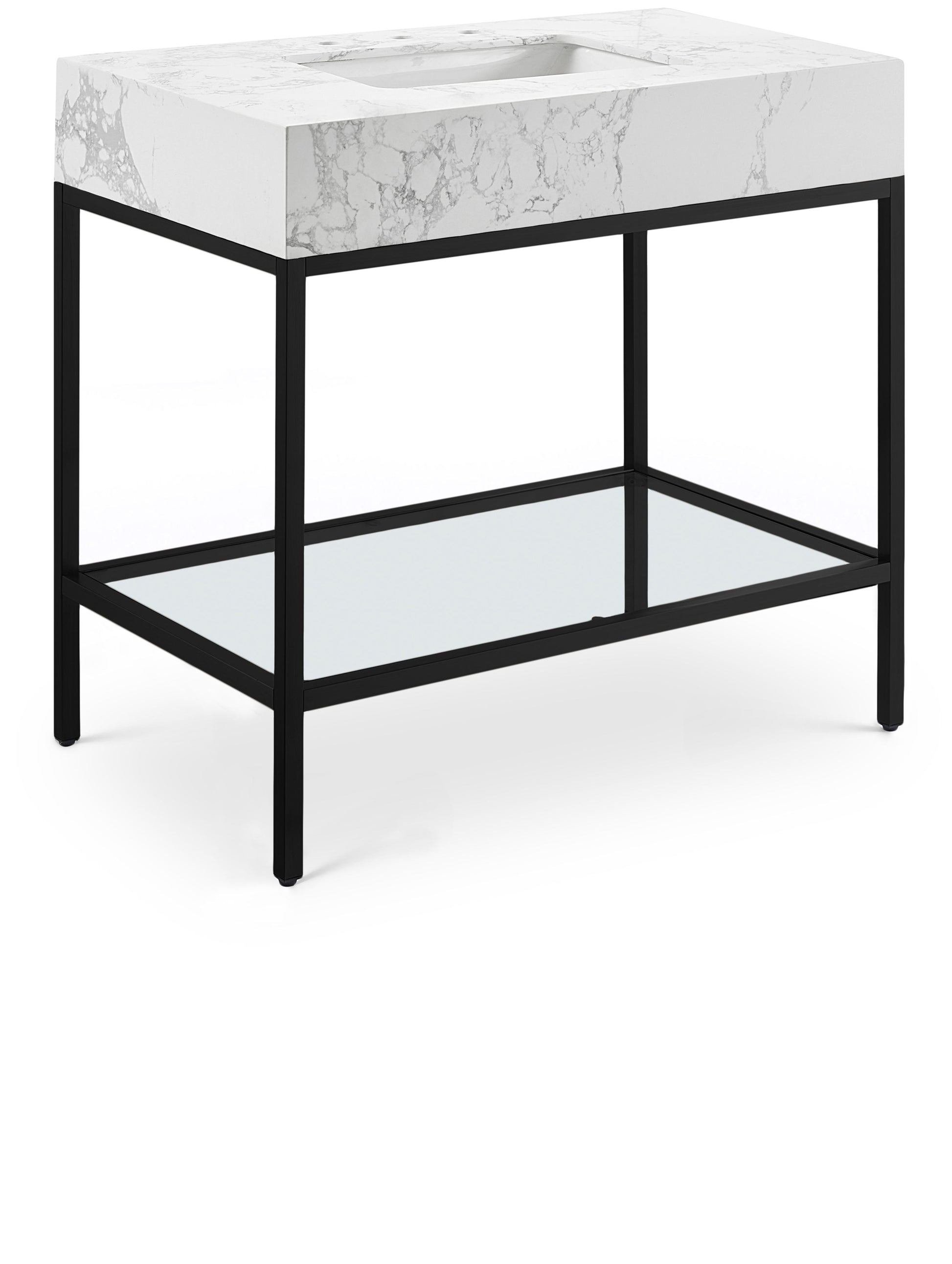 Marmo - 36" Engineered Marble Bathroom Vanity With Black Base - White