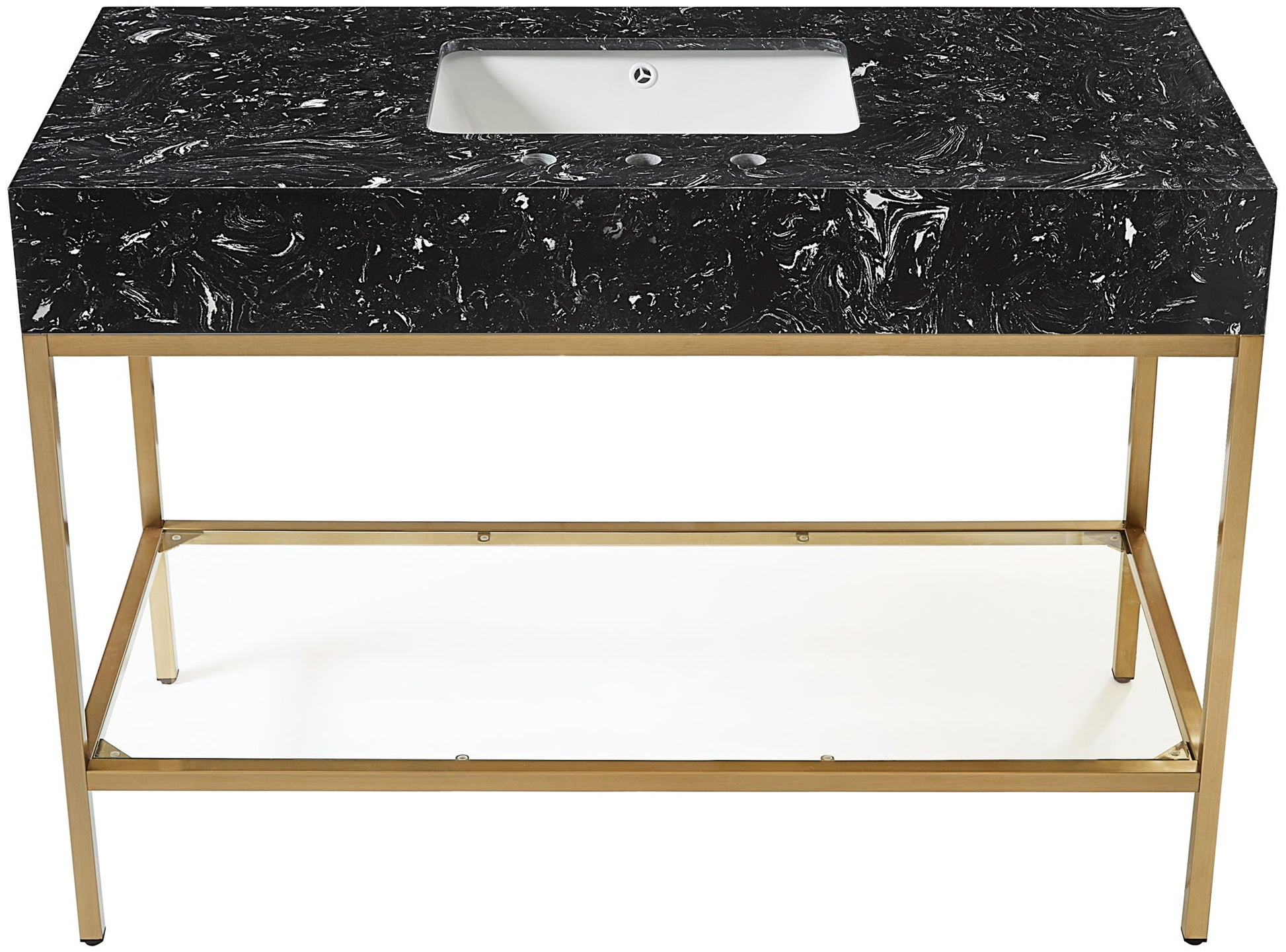 Marmo - 48" Engineered Marble Bathroom Vanity With Gold Base - Black