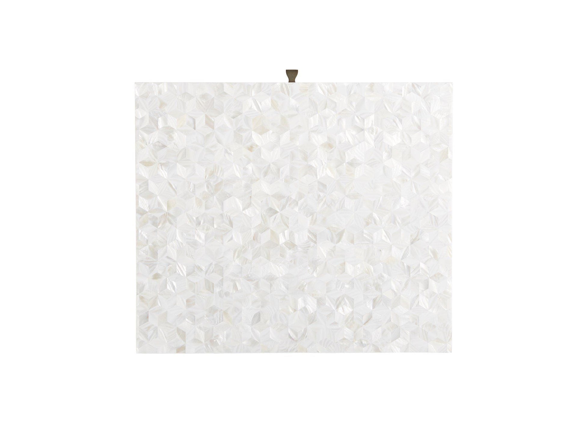 The Love Joy Bliss Bedside Table harmoniously exudes a perfect pairing of textures, with a mother of pearl overlay on the tabletop and drawer front, paired with a complementing white lacquer base. A sleek, linear design in soft gold metal adds additional interest and style at the base.