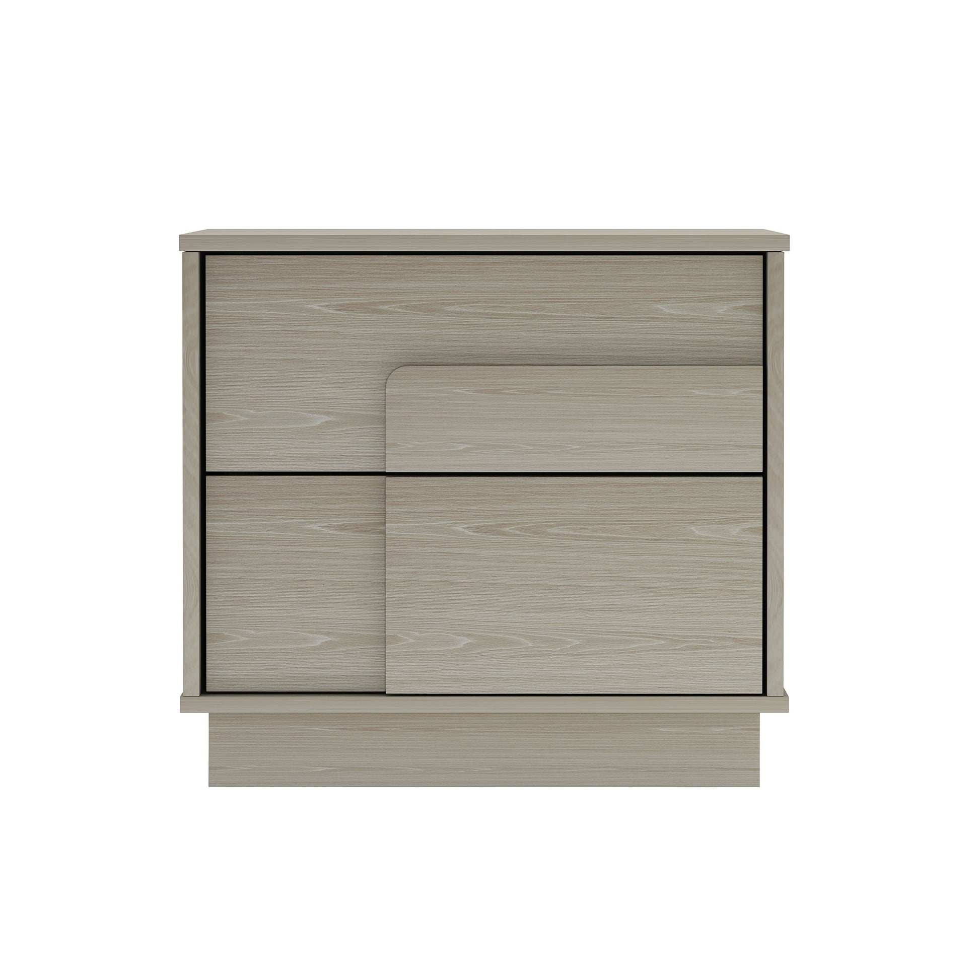 Modern Nightstand for Bedroom and Living Room Use. * Upon Assembly, Dimensions Measure: 21.7 in Length, 19.9 in Height, 17.7 in Depth. * Includes 2 Push to Open Full Extension Drawers to Fit Bedside Storage Needs. * Raised Platform Mop Base Design Allows for Easy Cleaning. * Wood Grain Finish Brings a Sense of Organic Elegance. * Sleek, Handle-Free Push to Open Drawers with Unique Overlapping Square Drawer-Front Detail. * Perfect for Bedside Storage, Lamps or Display Items. * "Snap It" Assembly! Assemble this Item with No Tools! Includes High Quality Internal Click Grooves for a Simple Assembly!