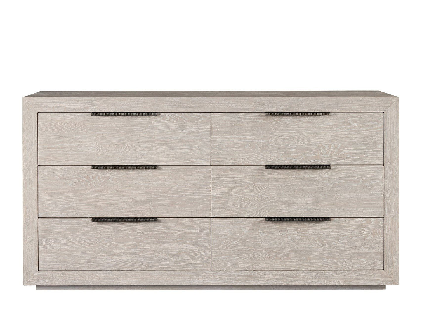 Defined by a clean Quartz-finished wood and textured bronze pulls, the Huston Dresser features six roomy drawers and convenient jewelry storage.