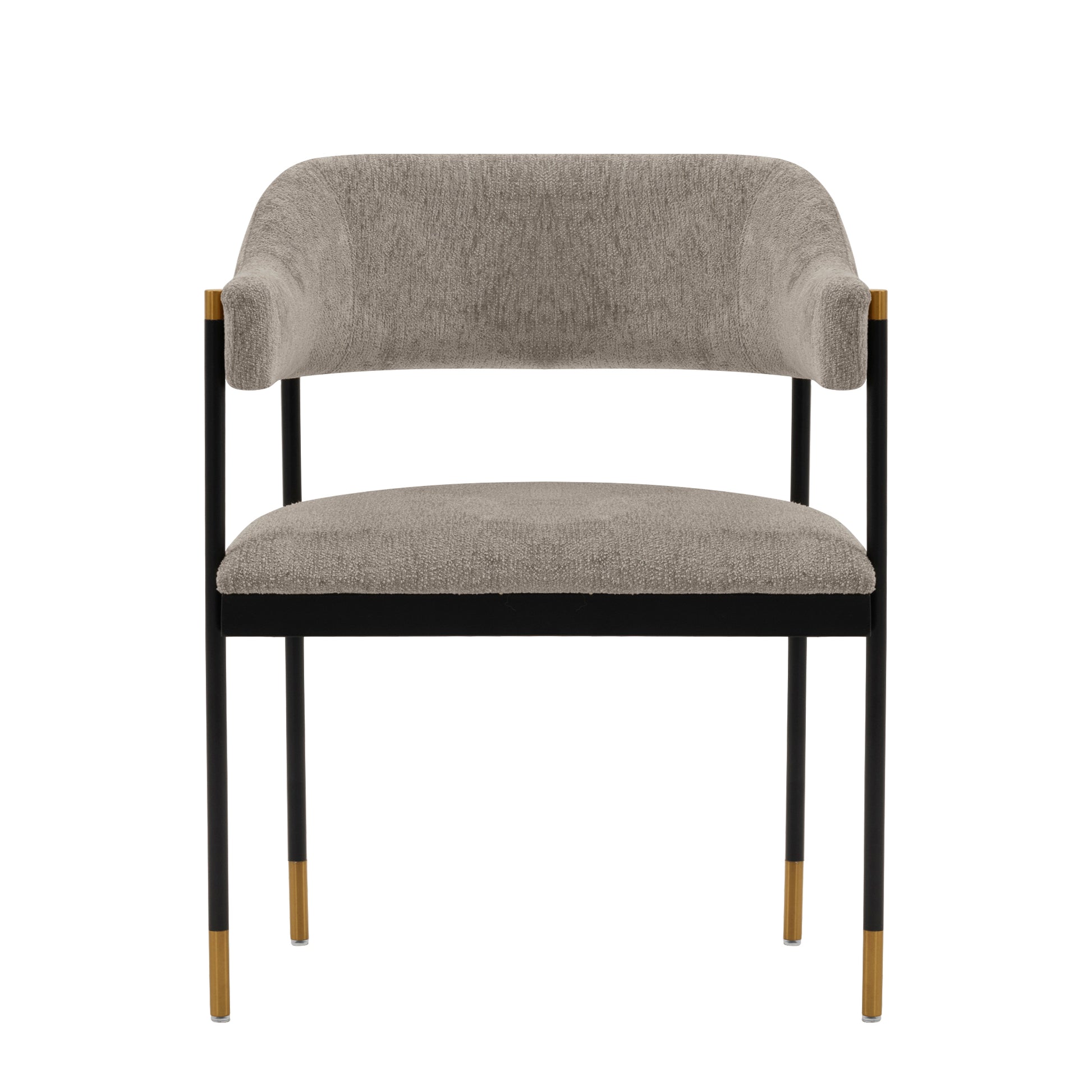 Modern Dining Chair for Dining Room and Task Chair Usage. * Measures: 24.8 in. Length, 31.89 in. Height, 23.23 in. Depth. * Frame Made of High Quality Metal with Brushed Gold Tips for Fashion and Durability. * Upholstered in Luxurious Chenille with High Density Foam Filled Padding. * Stunning Metal Frame with Gold Accents and Floating Back Design. * Inner Seat Depth: 20.47 in. Seat Height: 18.7 in. Inner Seat Width: 23.23 in. * Commercial Grade Tested with Weight Capacity of 330 Lbs. * Delivered to you Fully Assembled! No Assembly Required!