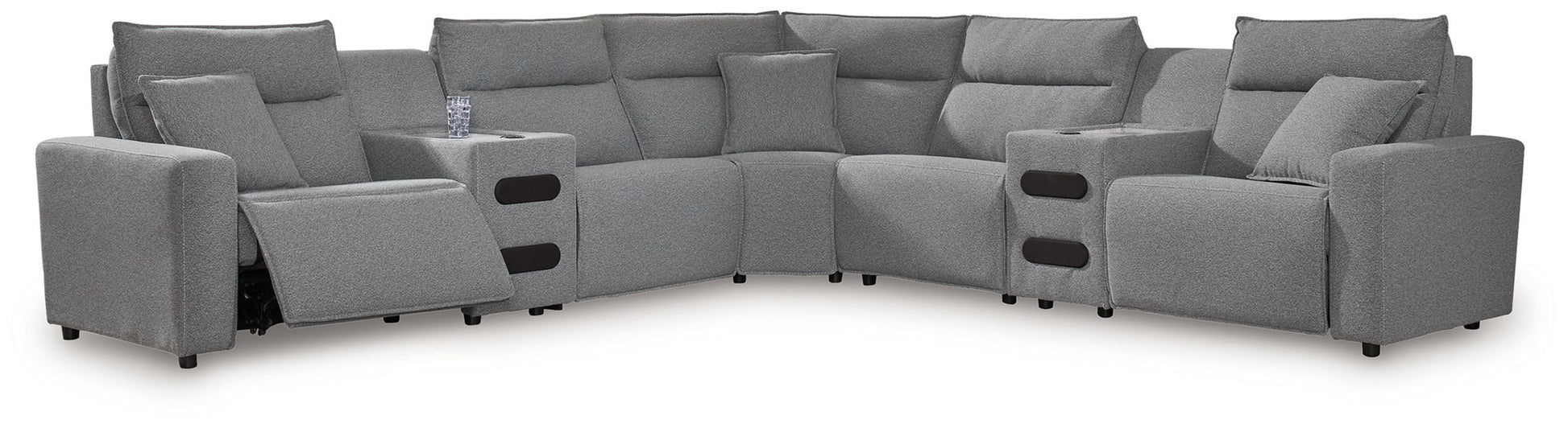 ModMax II - 7-Piece Power Reclining Sectional With 2 Audio Consoles - Salt and Pepper