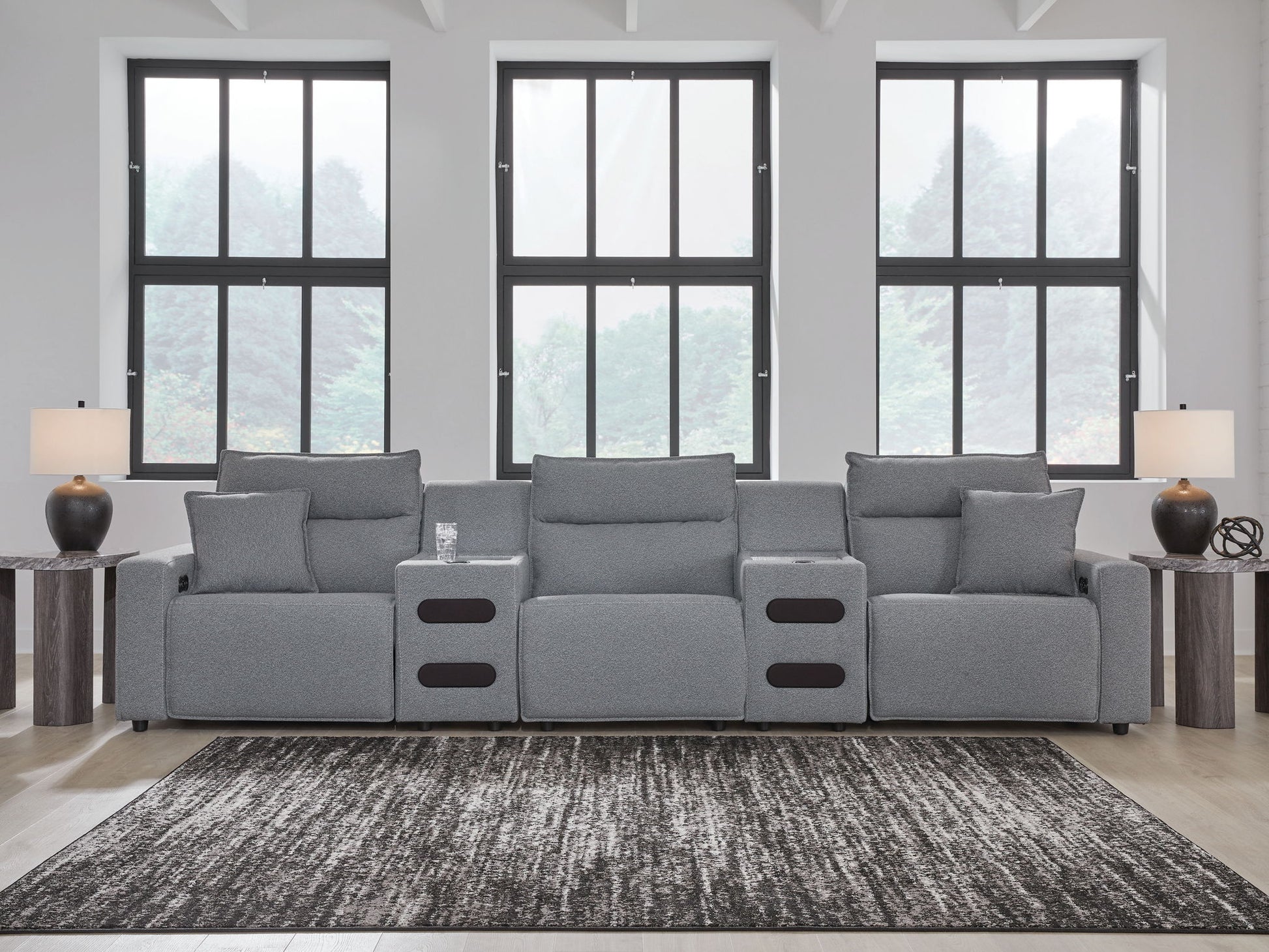 Looking cool and contemporary is great. But when it comes down to it, you’re all about low-maintenance lounging. With the performance fabric on this power reclining sectional, cleaning spills is a breeze. Its modular design caters to your ever-changing needs. And the audio consoles' built-in speakers with wireless connectivity turn your living room into an entertainment hub. It's proof that modern design and superb comfort go hand in hand.