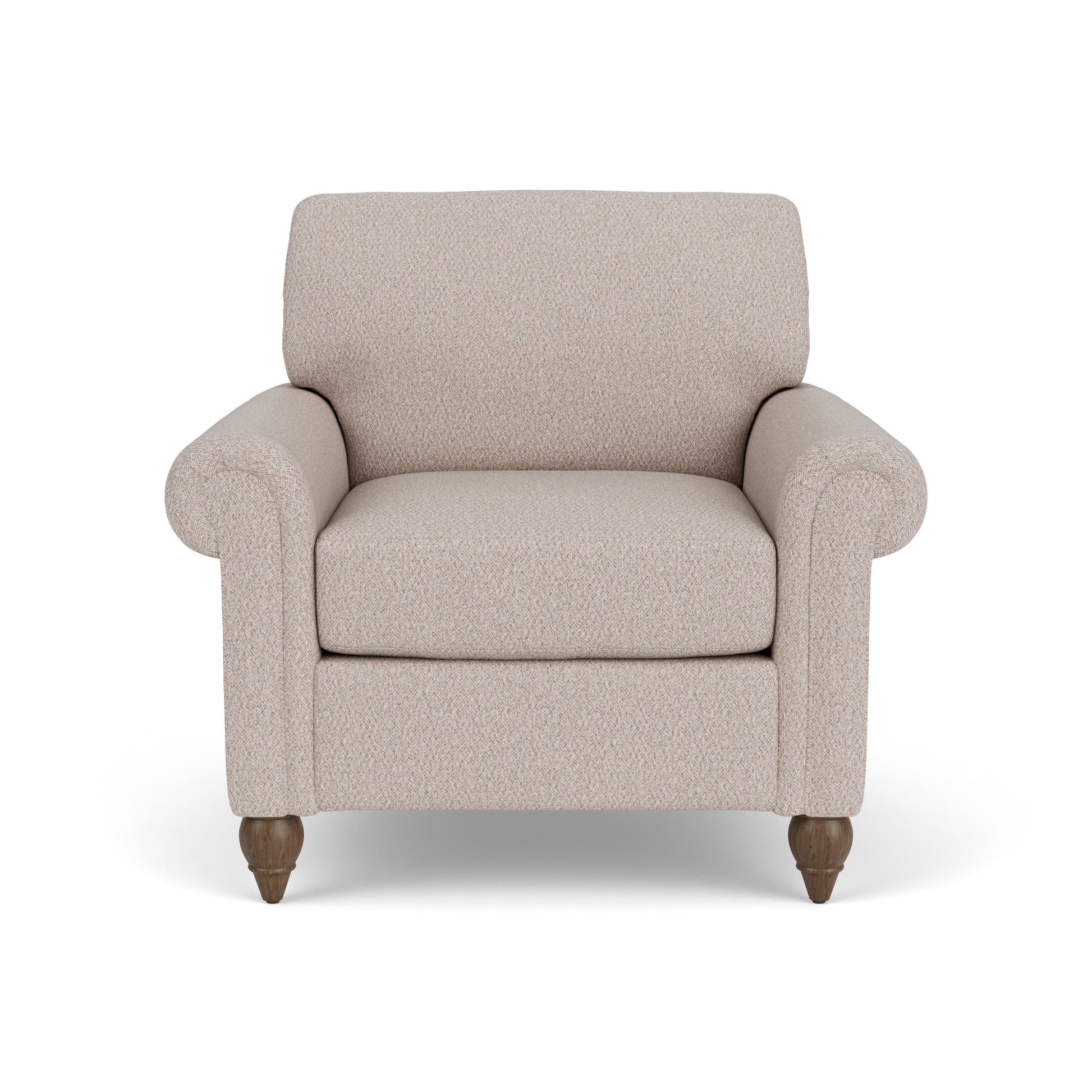 Spirit Meets Style. The Moxy chair ensures you never have to settle for anything other than the perfect design, no matter your style. Formal panel roll arms sit on round turned legs that are available in three distinct wood finishes — Florentine, Valencia, or Urban Renewal — to complement any décor. The removable square, inside seat cushion style offers you the flexibility to rotate for added longevity. Sink into the ideal level of support with your choice of our luxury or plush cushion. Complete the look and showcase your lifestyle with hundreds of different fabric choices, including high-performance and sustainable textiles. Superior frame construction and our patented C-Flex Blue Steel Spring™ ensures your Moxy can be enjoyed for years to come.