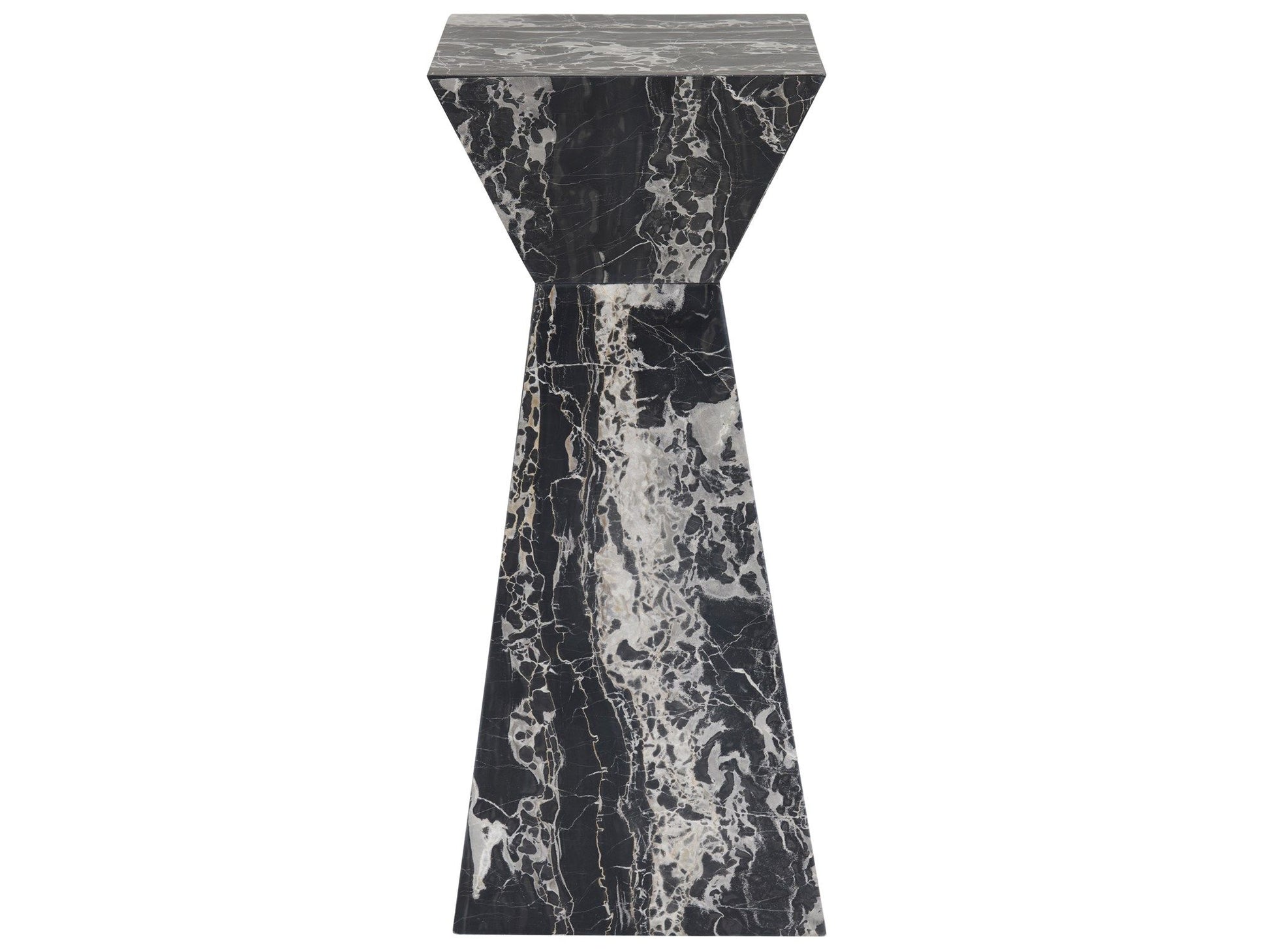 The Mowry Spot Table, sculpted from the richly veined Golden Portoro Marble, presents a captivating geometrical silhouette that effortlessly commands attention. The intricate marbling patterns engage the senses, drawing the eye and imbuing any setting with a tranquil yet compelling elegance.