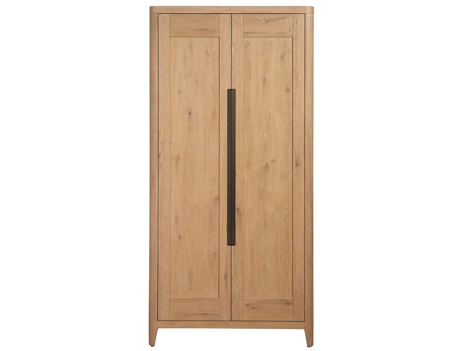 The Walker Wardrobe merges simplicity with sophistication in its design, featuring two doors that open to reveal thoughtfully arranged interior shelving. Its organic Natural finish is complemented by deep-hued hardware, offering a piece that harmonizes with a multitude of design aesthetics. This wardrobe stands as a testament to understated elegance, providing both functionality and a warm, inviting presence in any space.