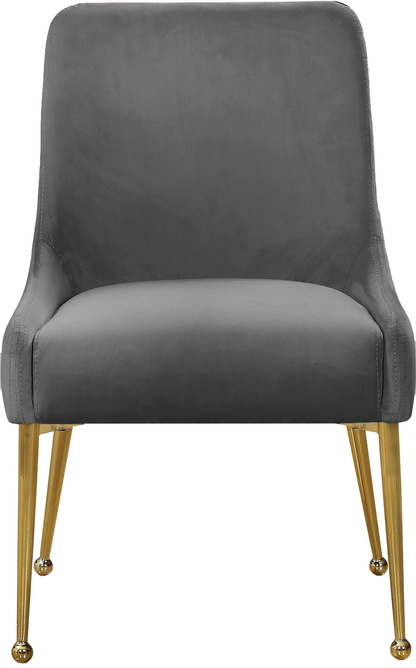 Revamp your dining space with this Owen Dining Chair. Posh velvet upholstery covers every inch of this chair, giving it a svelte look that's just the thing for modern decor. The polished legs have a ball design for added visual oomph, and a matching handle on the back adds an elegant detail while also providing an easy way to slide the chairs in and out from your choice of table.