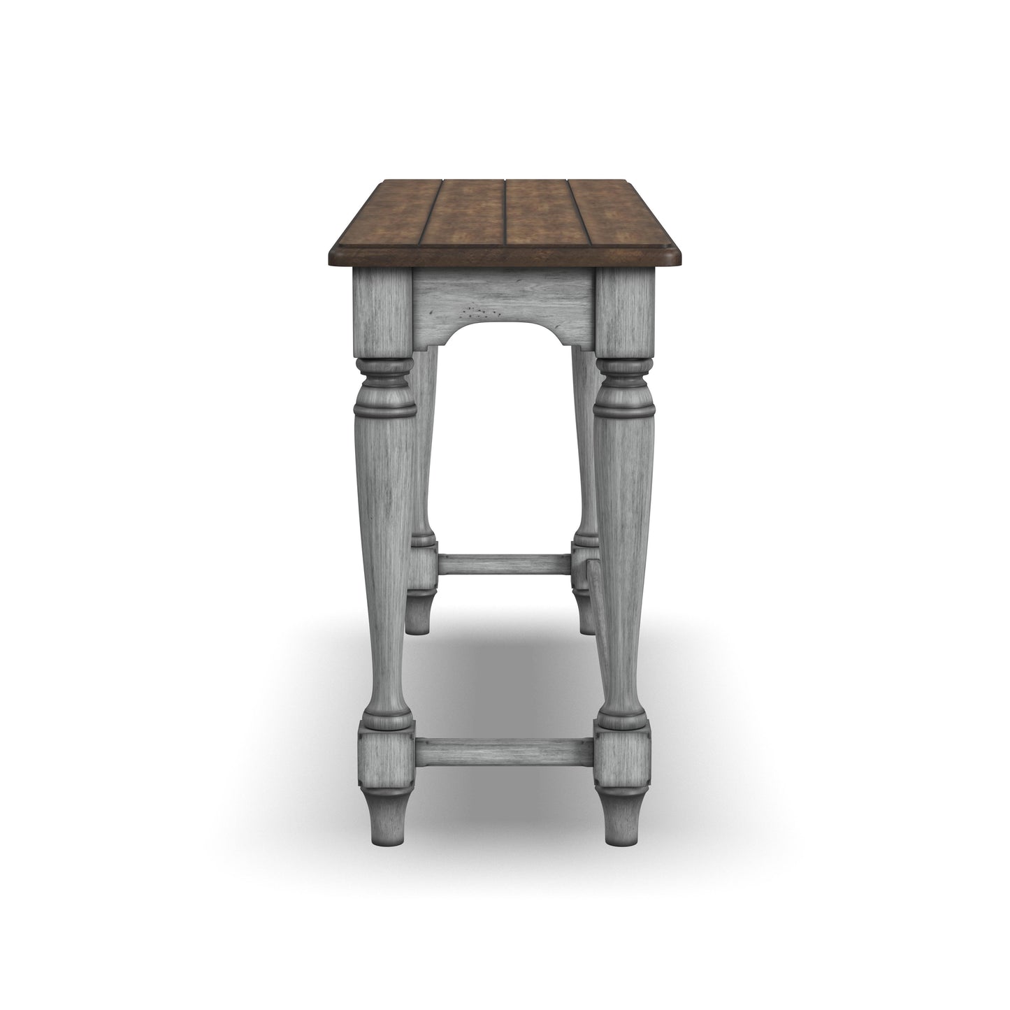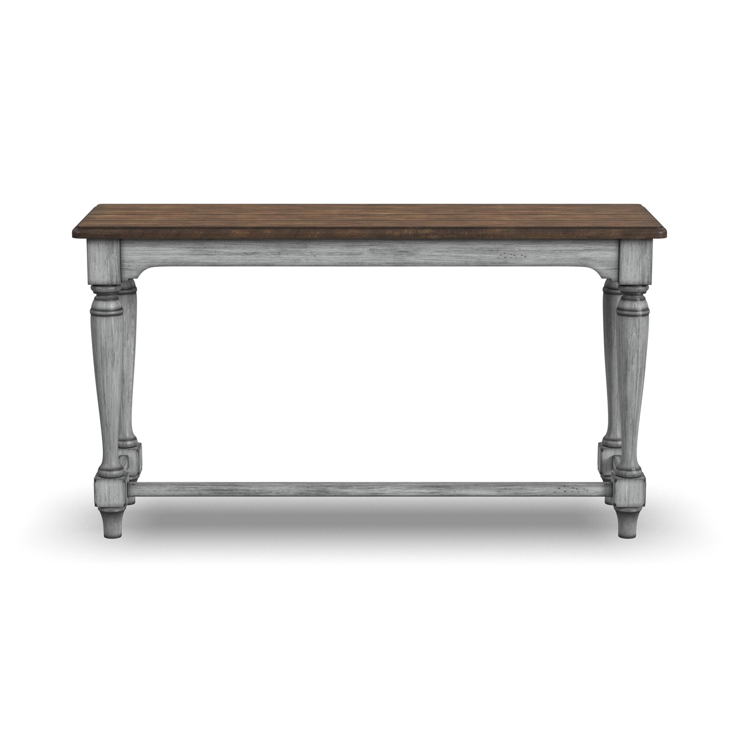 Capture the relaxed charm of an inviting, cozy cottage with the Plymouth sofa table, which fits perfectly behind a sofa, loveseat, or along a wall. A weathered graywash finish, medium brown planked top and turned legs offer vintage character that will enhance the look of any living space.