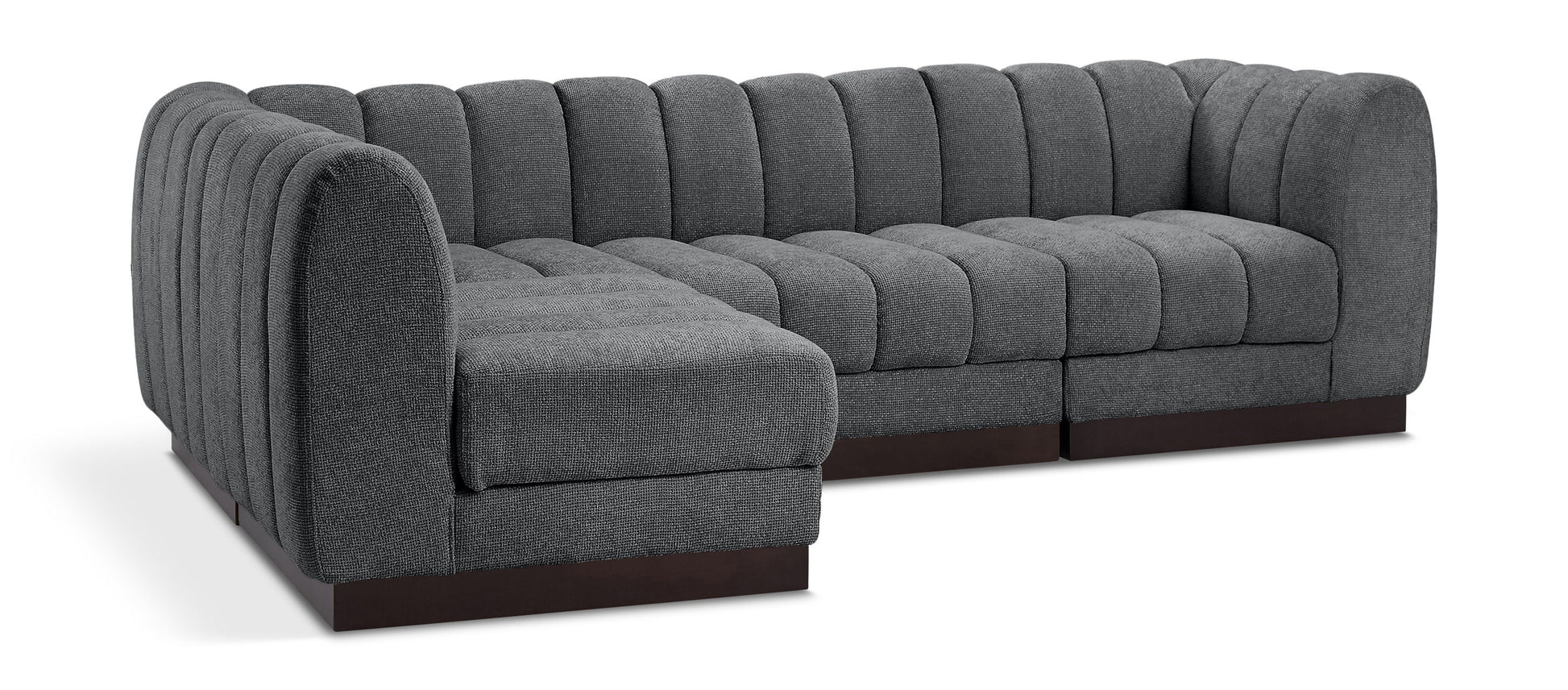 The Quinn Modular Sectional is a stunning piece crafted in a rich and luxurious chenille fabric. Its awe-inspiring design and exceptional quality make it a perfect addition to any space, whether it's a living room, bedroom, or office. The sectional's plush cushioning and sturdy frame provide both comfort and durability, ensuring that it will be a favorite for years to come. Whether you're looking for a statement piece or simply a comfortable seating option, the Quinn sectional is an excellent choice.