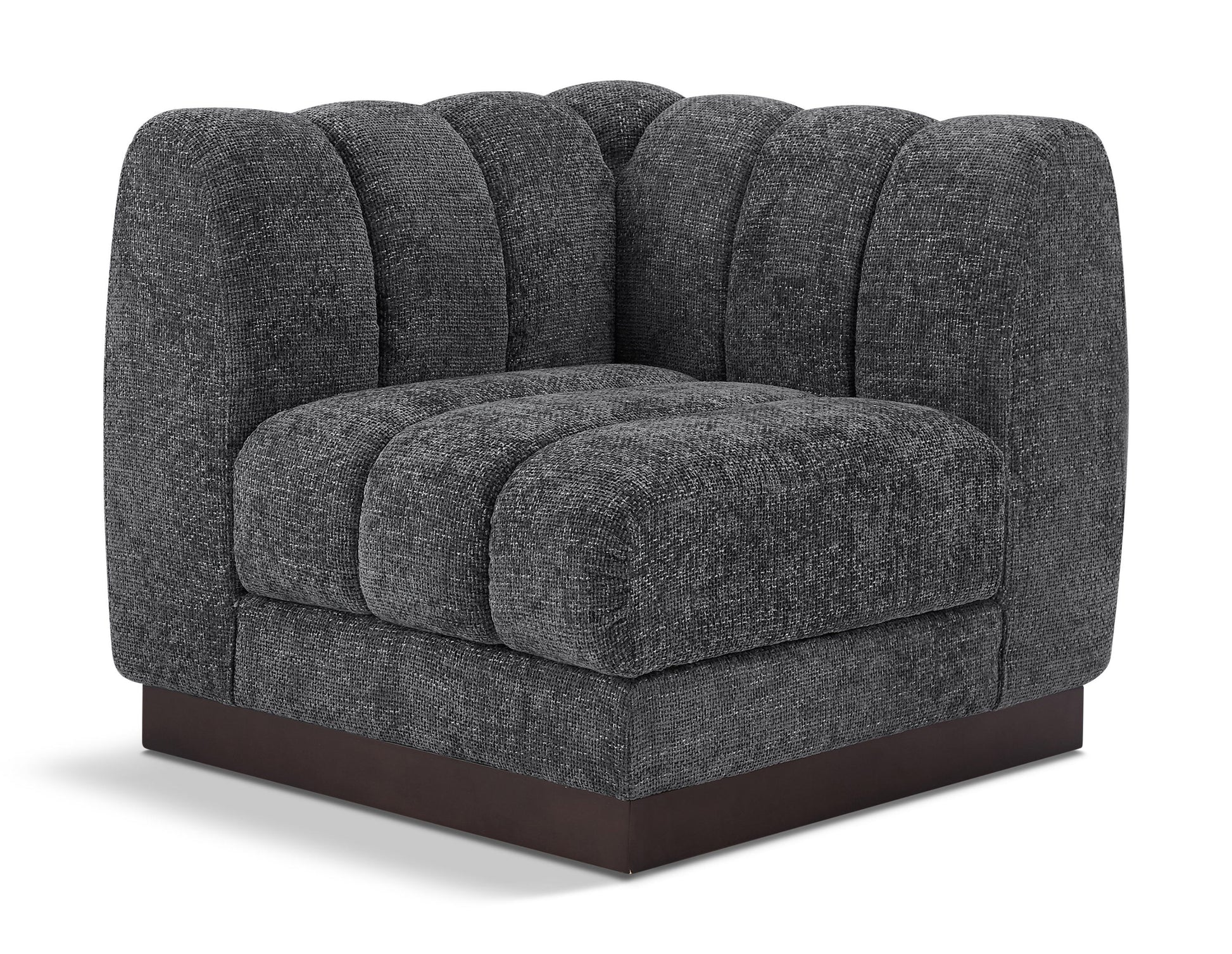 The Quinn Corner Chair is a stunning piece crafted in a rich and luxurious chenille fabric. Its awe-inspiring design and exceptional quality make it a perfect addition to any space, whether it's a living room, bedroom, or office. The chair's plush cushioning and sturdy frame provide both comfort and durability, ensuring that it will be a favorite for years to come. Whether you're looking for a statement piece or simply a comfortable seating option, the Quinn corner chair is an excellent choice.