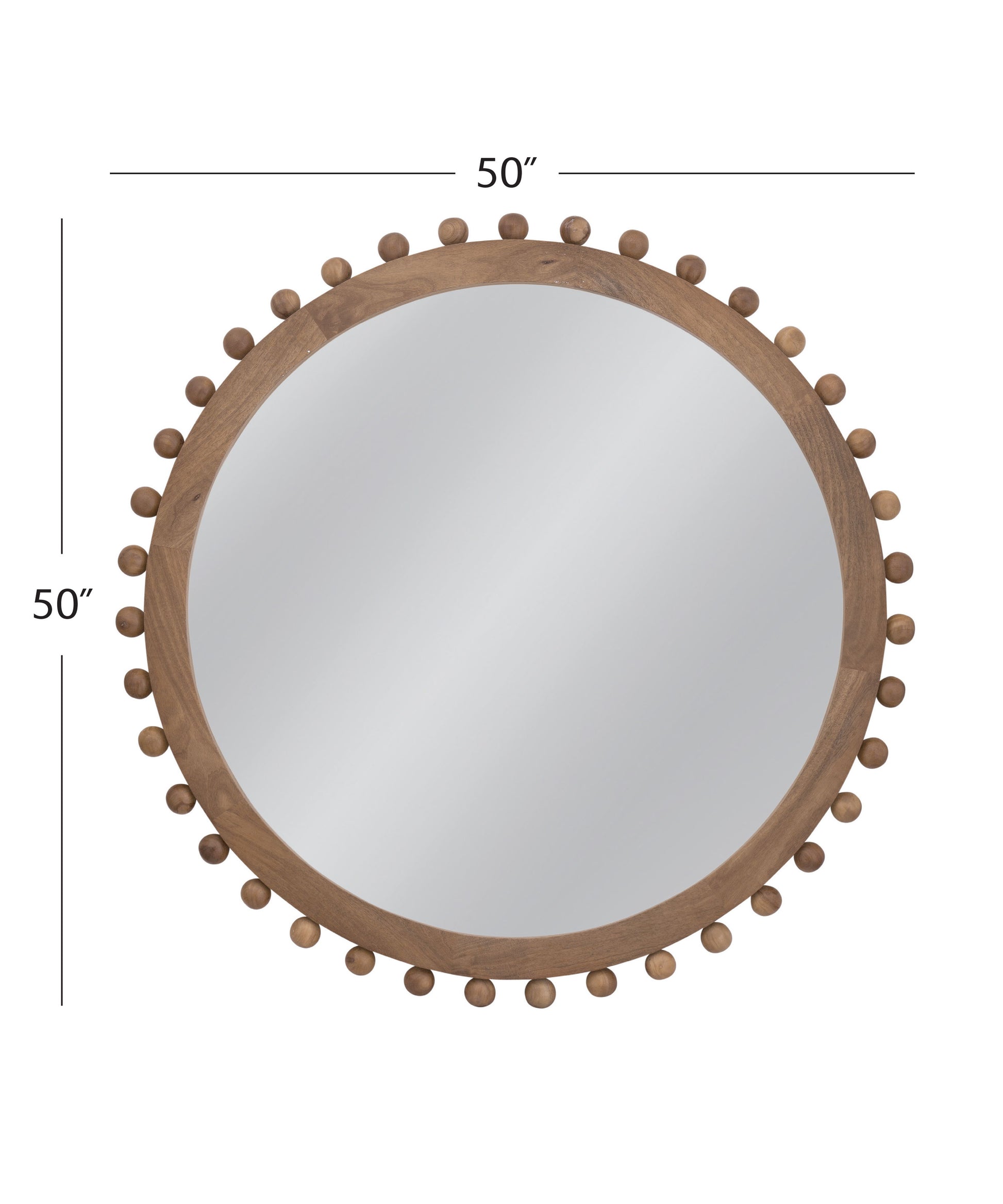 The Round Renn Wall Mirror combines modern boho design with natural charm, featuring a wood frame that adds warmth and texture to any room. The hobnail detailing around the frame creates a unique, textured look that enhances the mirrors bohemian appeal. Its round shape and simple design make it a versatile addition to various interior styles, from relaxed to more refined settings. The Round Renn Wall Mirror is perfect for adding a touch of casual elegance to your home decor.