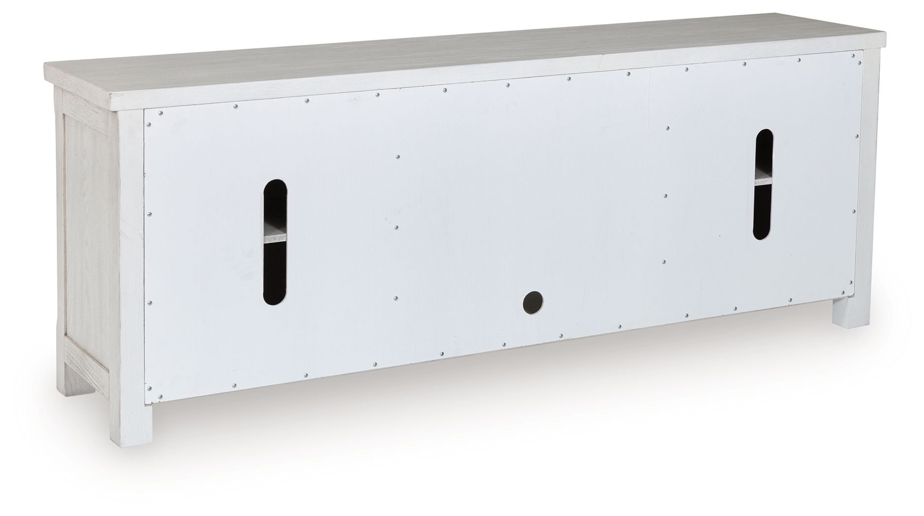 This TV stand is sure to impress when it’s time to relax after a tough day. With an antiqued white finish and wood grain texture, modern farmhouse-style design has never been so fashionable. Its cabinets and adjustable shelves are ideal for keeping all your equipment well organized and displaying your treasures. And that storage drawer is perfect for smaller accessories, bringing even more function to your entertainment space. All that’s missing is you.