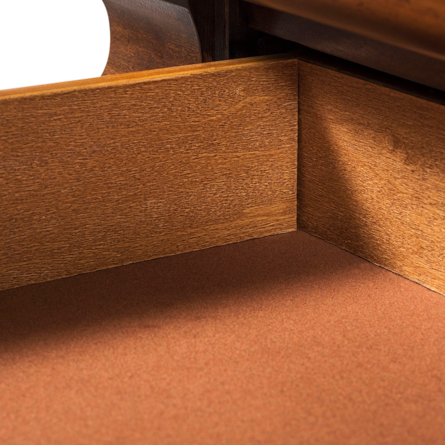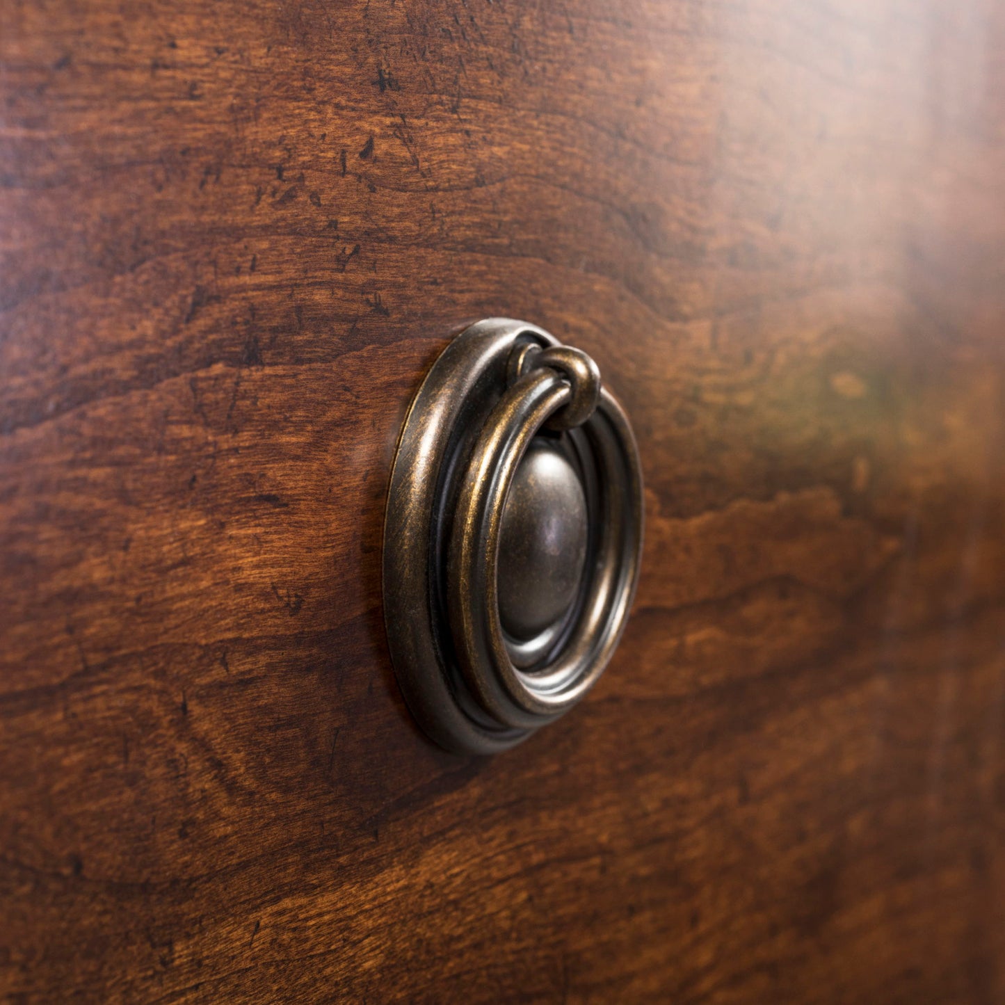 Achieve a casual traditional look with this 3 drawer night stand. The rustic cherry finish is attained through pin knotty cherry and a well-worn look. This Louis Philippe style night stand features chamfered pilasters and bun feet, adding to the casual feel.