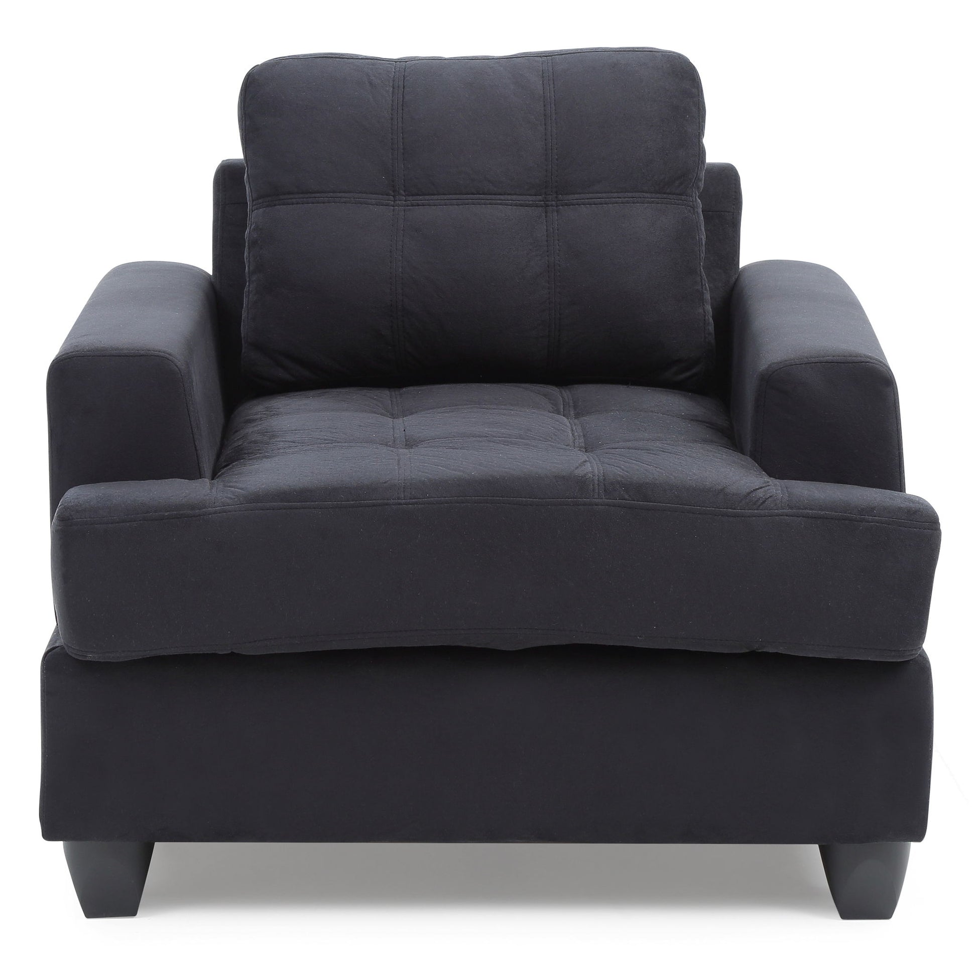 This versatile chair offers an inviting seating experience with its comfortable tufted design, entirely enveloped in striking black fabric. Its minimalist aesthetic makes it a suitable addition for a range of environments, from trendy living rooms to dynamic office spaces, enhancing the overall decor without overwhelming it. Built on a sturdy hardwood framework, this chair is engineered for durability, ensuring it can withstand daily use while maintaining its structure. The combination of reliable construction and timeless design allows this piece to seamlessly blend into various furnishing styles, making it a smart choice for your home. Measuring 36 inches in height, 38 inches in width, and 34 inches in depth, this chair strikes a balance between spacious comfort and compact capability, lending itself well to both smaller and larger areas. It promotes a cozy atmosphere, ideal for relaxation or casual gatherings.