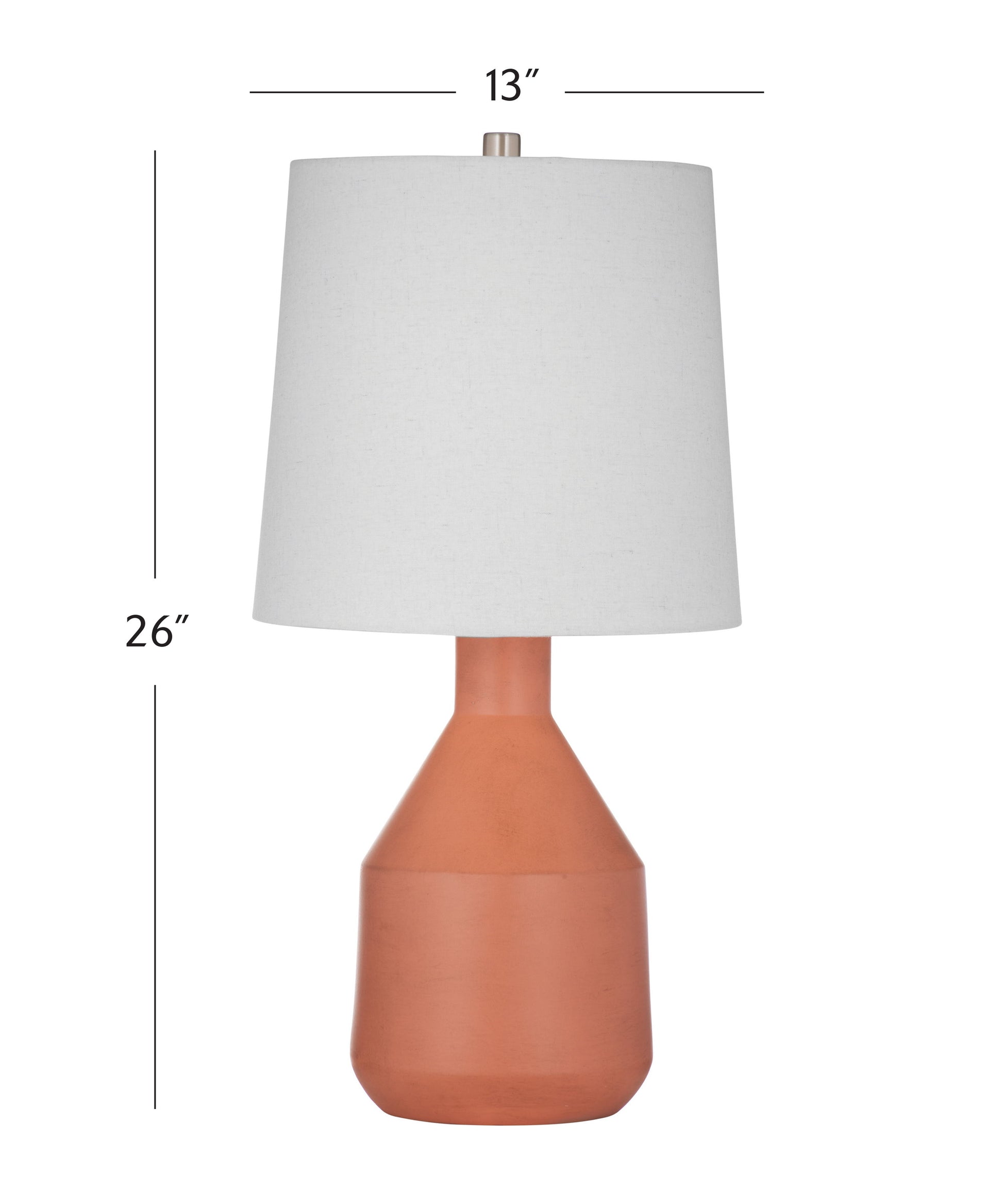The Sheridan Table Lamp captures the essence of boho style with its ceramic lamp body, featuring a raw, terracotta-like finish that lends a handcrafted look. The simple yet impactful bottle shape of the base pairs beautifully with the earthy, natural tone of the ceramic, giving it a relaxed, artisanal feel. A textured fabric lampshade in a neutral color sits atop, diffusing light to create a warm, inviting glow. This lamp is perfect for adding a touch of organic charm and laid-back elegance to any space that cherishes unique, bohemian flair.
