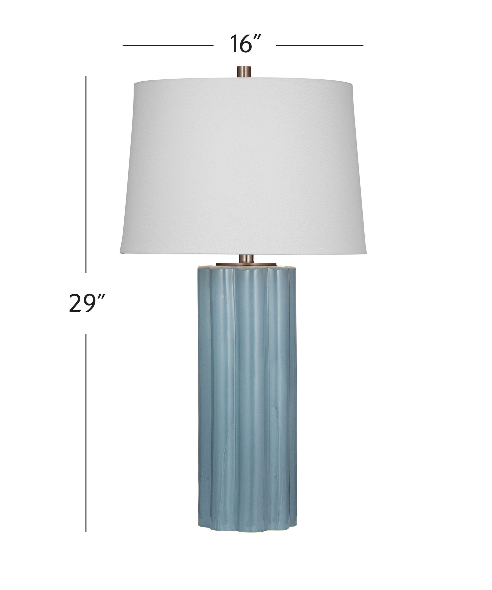 The Shreen Table Lamp features a blue ceramic base, bringing playful coastal aesthetics into any room. Its vibrant color and fun design make it a standout piece, while the simple shape keeps the look fresh and modern. Perfect for adding a lighthearted touch to your space, this lamp brings both style and warmth to any coastal-inspired or relaxed interior. The Shreen Table Lamp combines functionality with charming design, making it an ideal addition to your home.