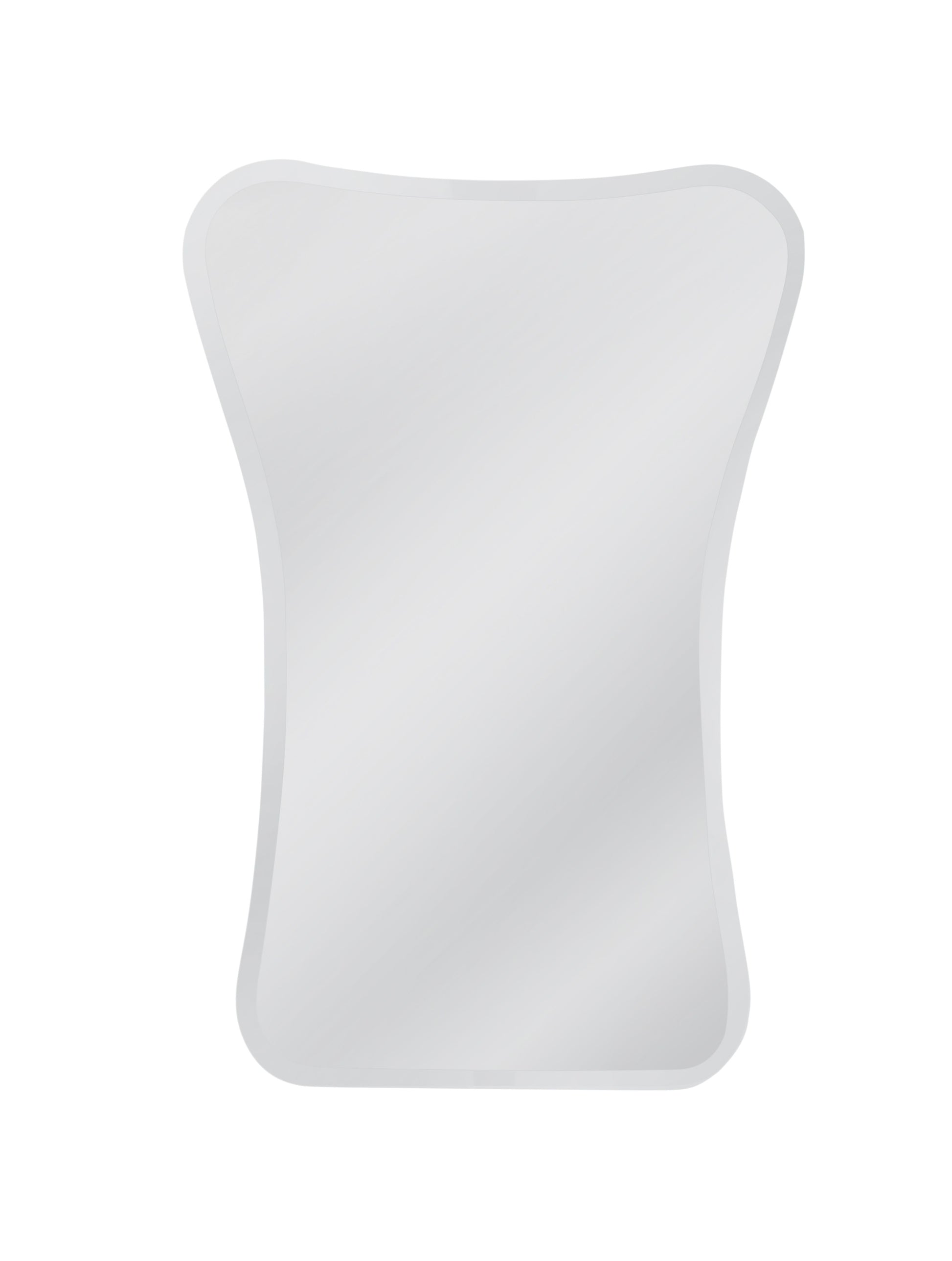 The Sullivan Wall Mirror boasts a contemporary design with clean edges and an hourglass shape adorned with rounded corner detailing. Its timeless appeal makes it a versatile addition that effortlessly complements any space.