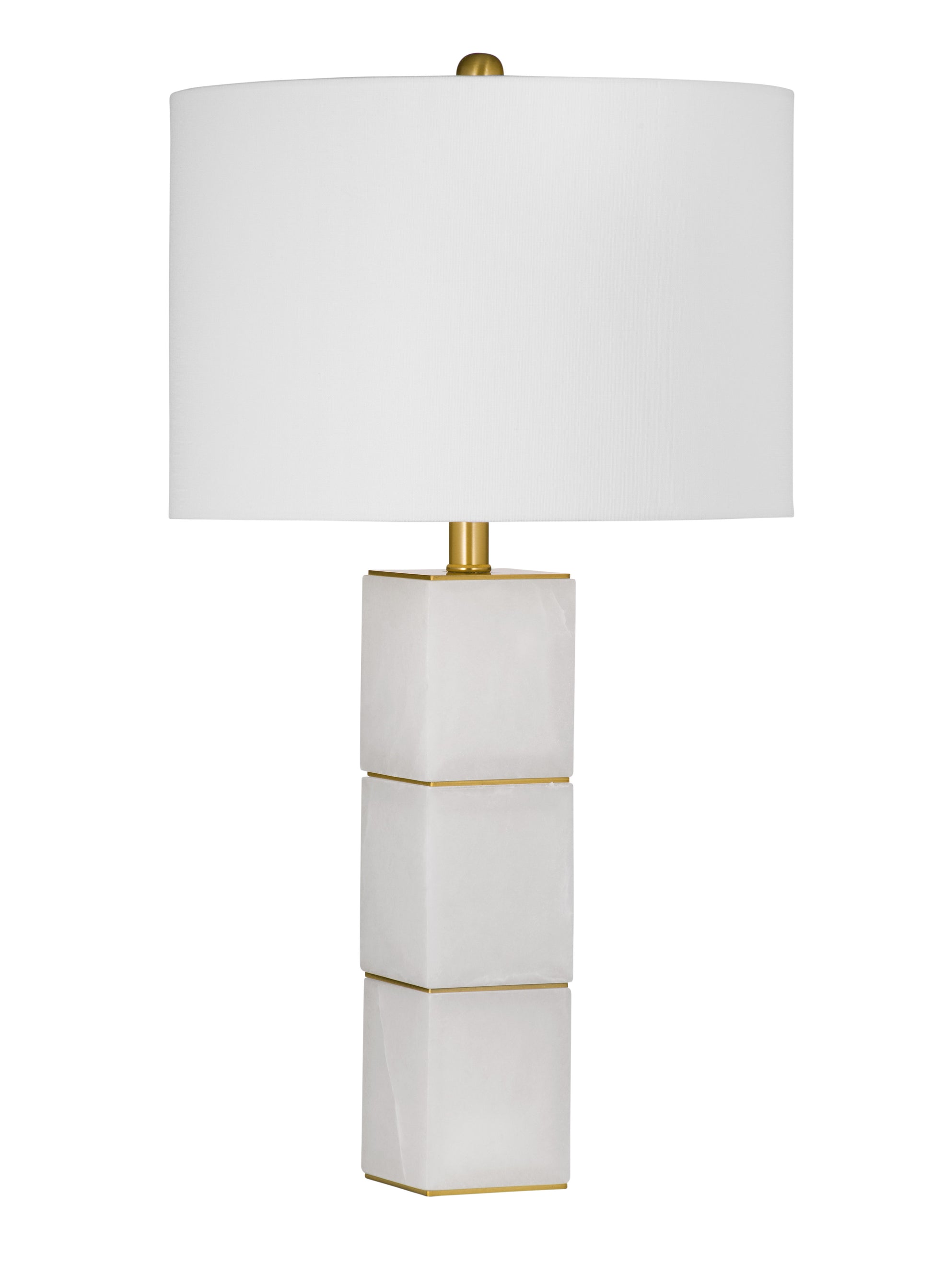 The Swindon Table Lamp is meticulously fashioned from alabaster and metal, featuring an elegant brass finish and adorned with a crisp white drum shade. This refined composition not only adds a touch of sophistication but also provides a balanced and timeless aesthetic to any space.