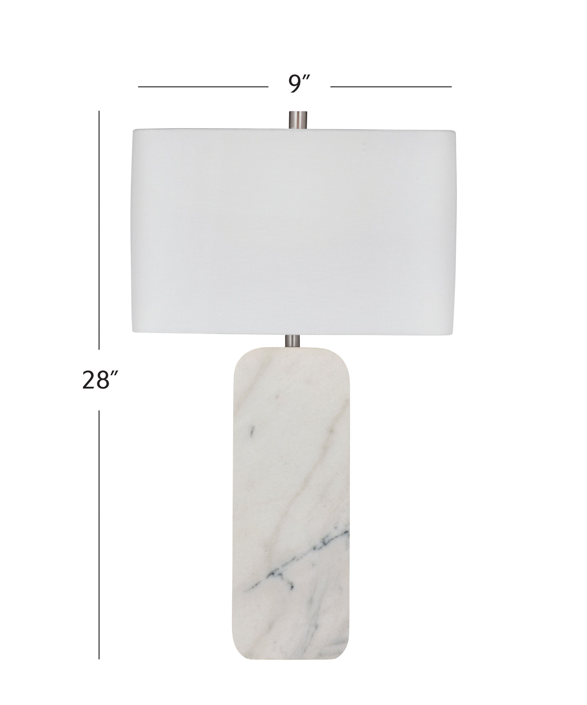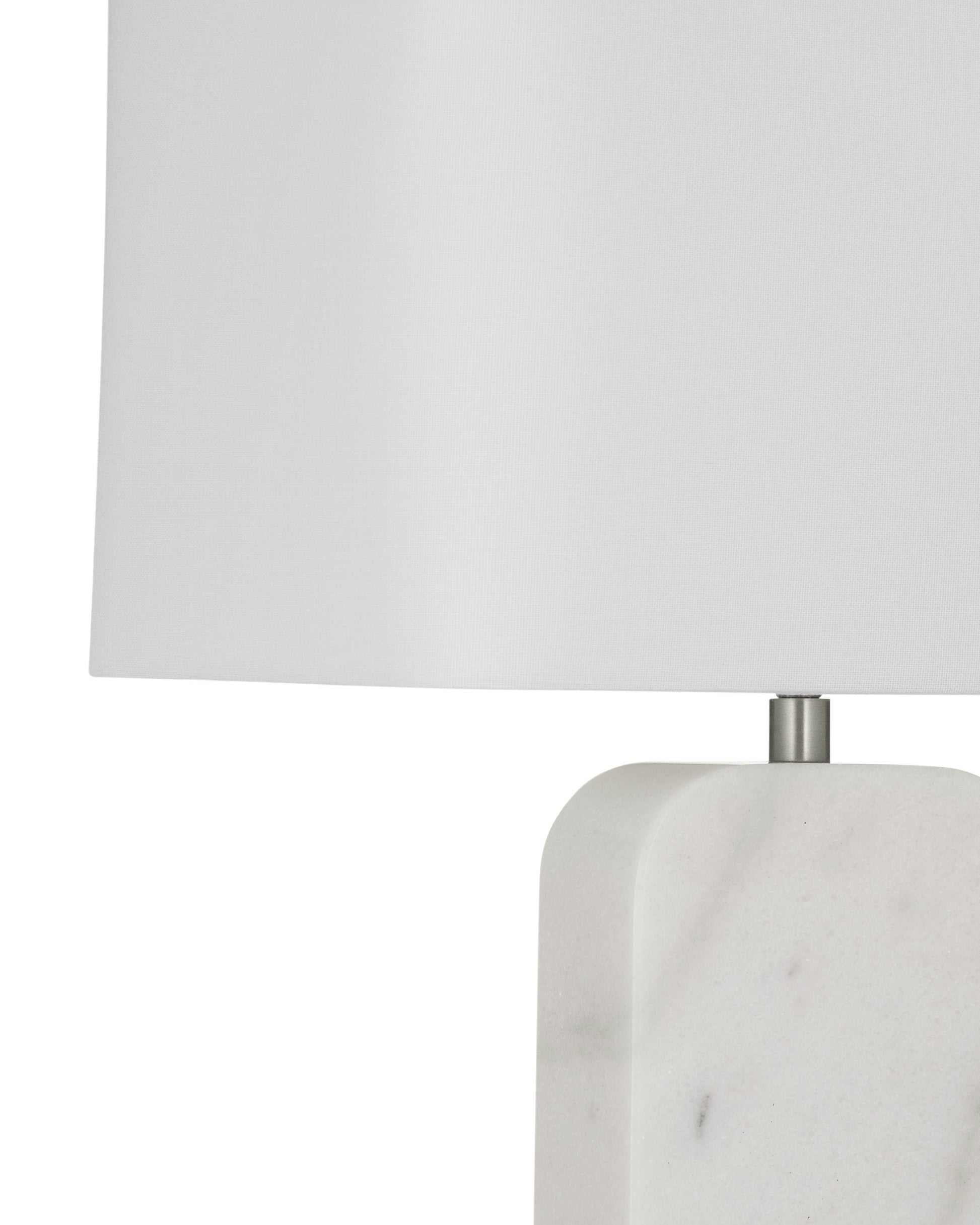- Contemporary table lamp with a sleek white marble base featuring natural veining for a unique look