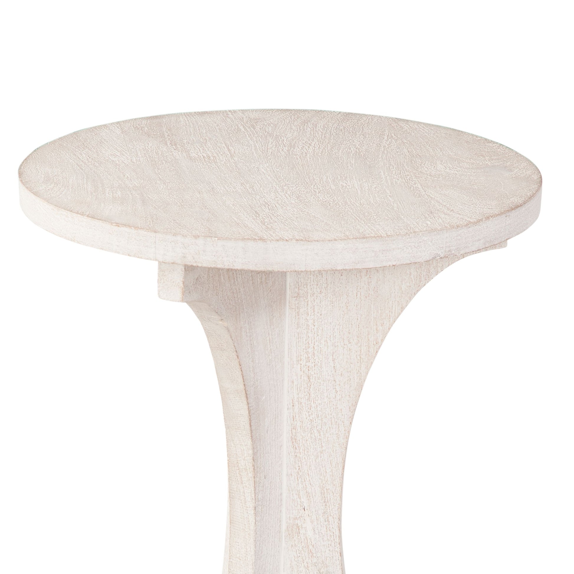 The Tait Accent Table has a boho, coastal design style. The solid mango wood table features a sandblasted finish, adding texture to the white-washed color.