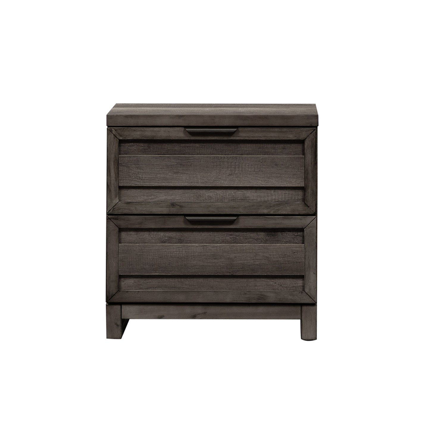 This urban night stand is the perfect way to enhance your room with a modern style. This piece is crafted with melamine and rubberwood solid framing, featuring bottom case dust proofing, solid wood picture frame drawer fronts, anchored by a solid wood sled base. The melamine is scratch resistant and is sure to last in any home. The dark antique brass center finger pull hardware effortlessly adds dimension to this piece, making it stand out in any space.