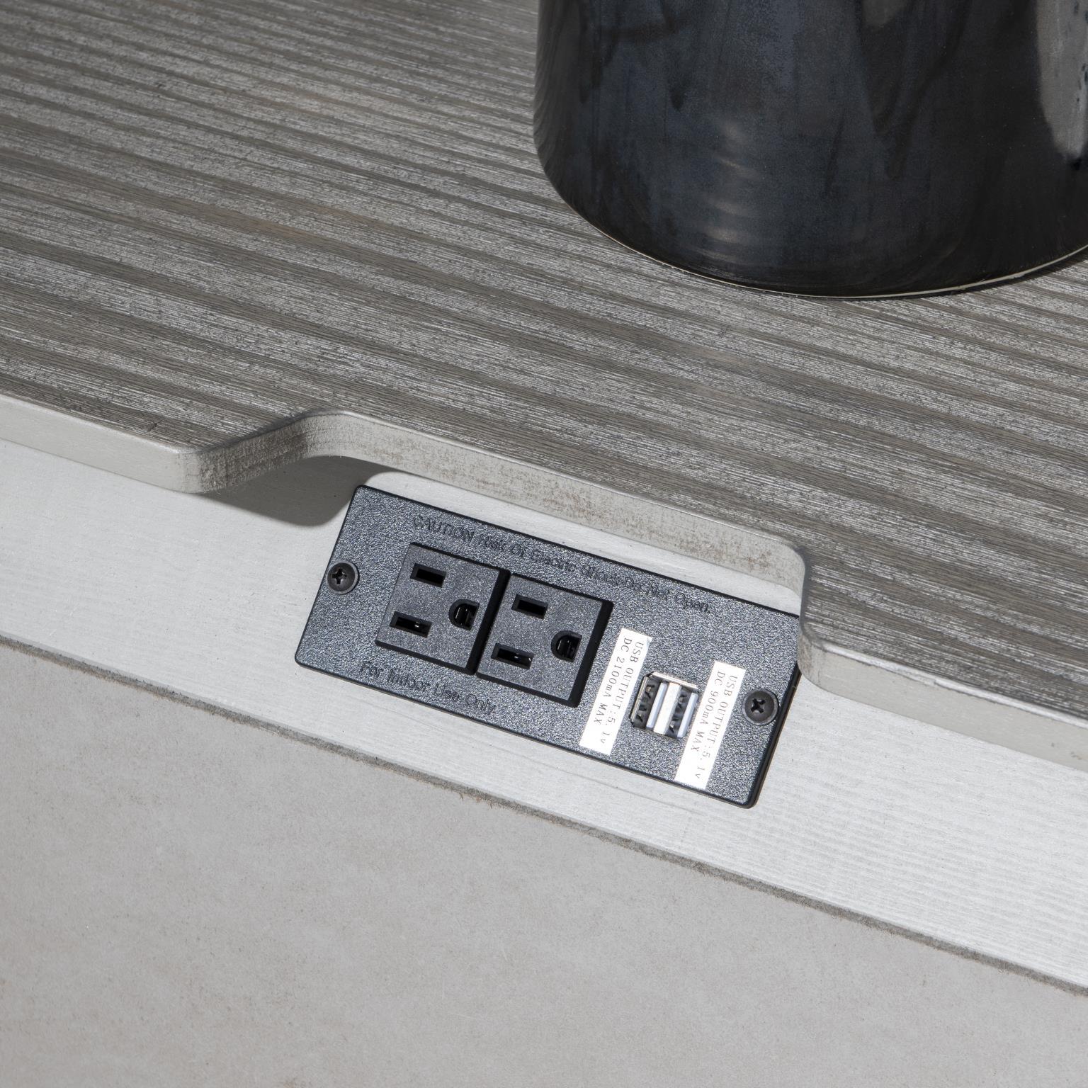 Angular modern shapes organic textures and mixed materials combine with a color palette to create a crisp modern look in the Terra Luna whole home furniture collection. The deeply wire-brushed finish gives a tactile dimensional texture contrasting with the case fronts and upholstery and metallic-finished table and chair bases. Over scaled jewelry-like Nickel hardware adds a glam touch. The clean silhouettes paired with natural color tones and organic textures give a minimalist yet inviting appeal.