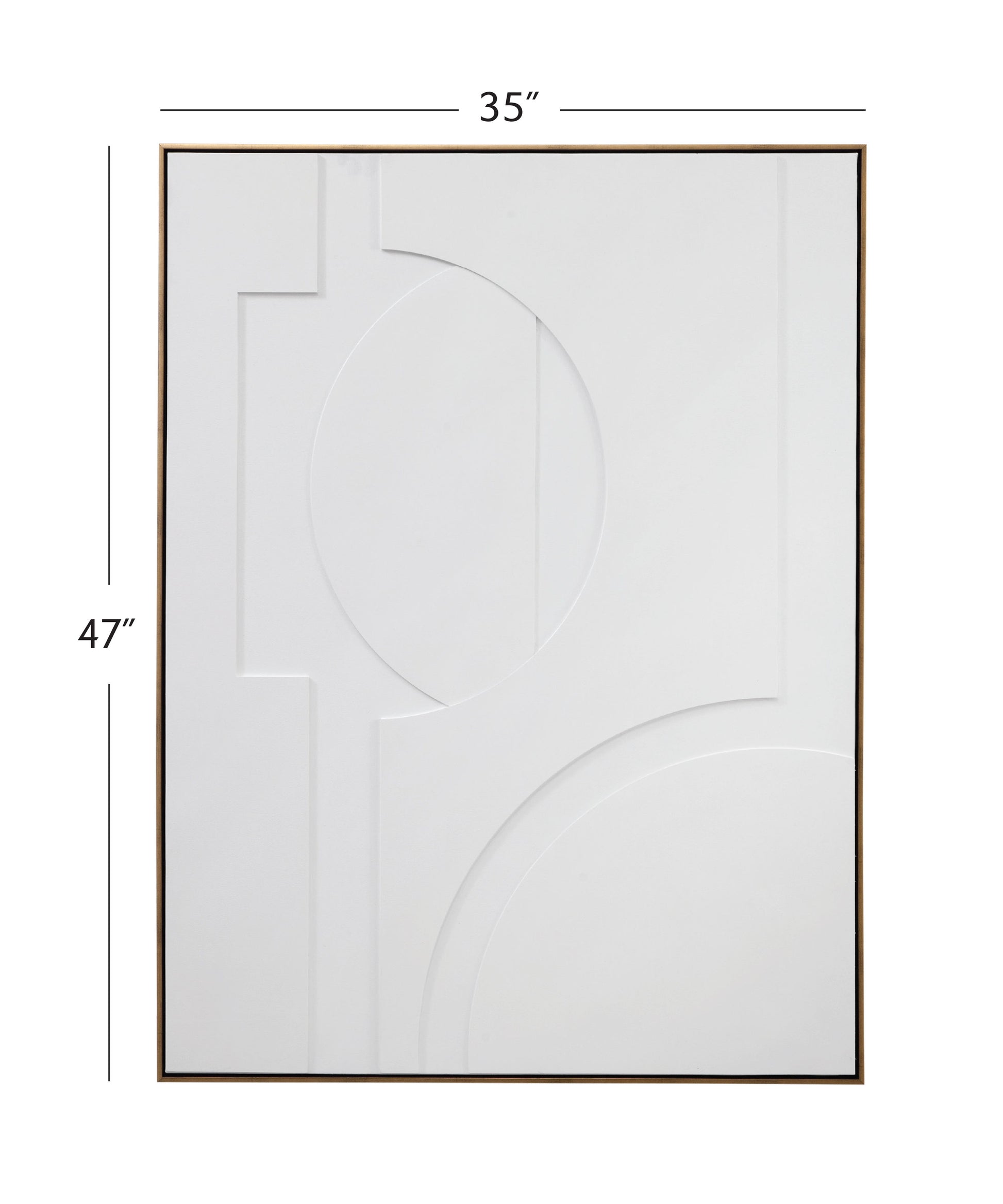 The Lonious is a wall hanging featuring a relief geometric design with gold molding.