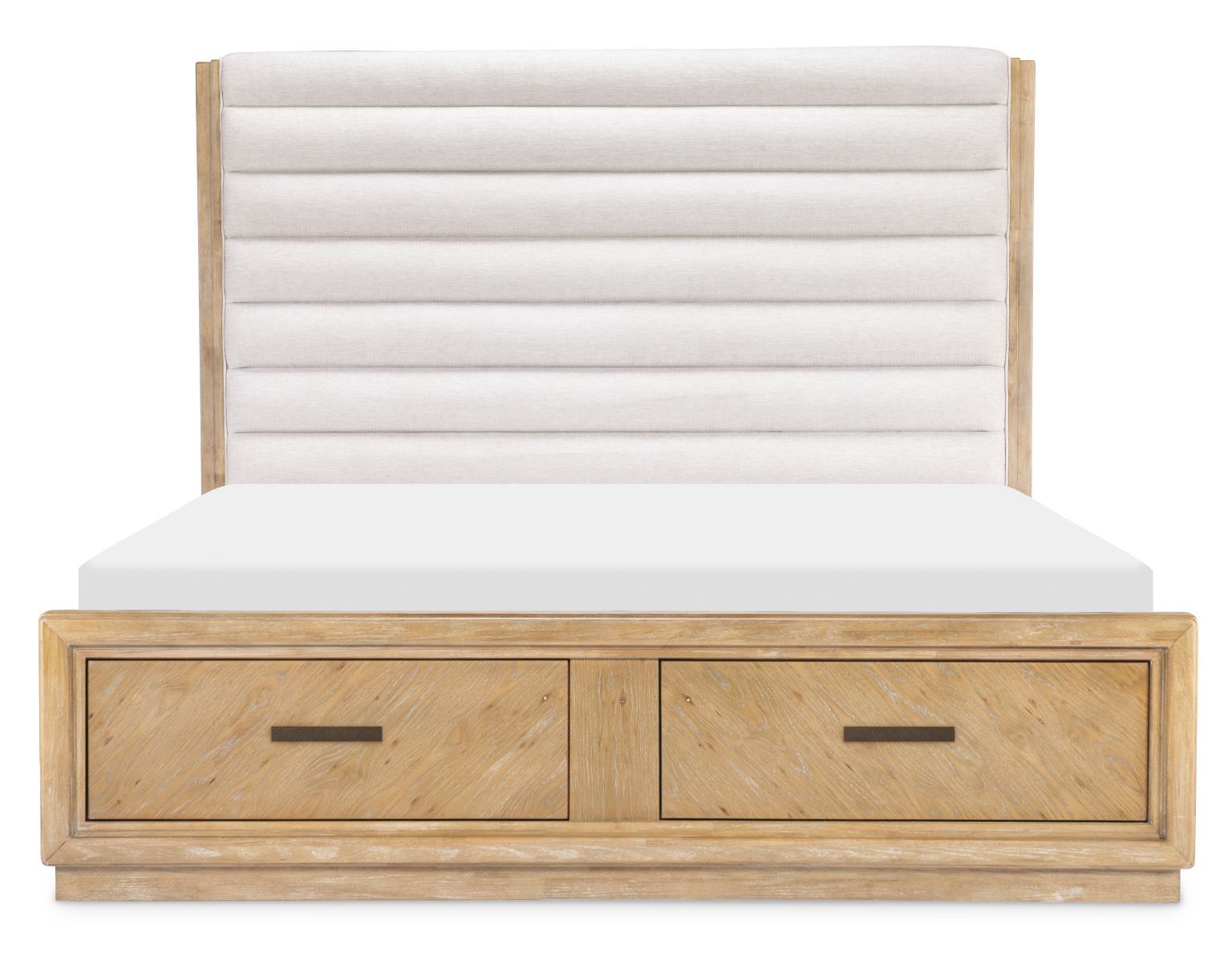 Torrance - Complete California King Channeled Upholstered Storage Bed - Aged Driftwood
