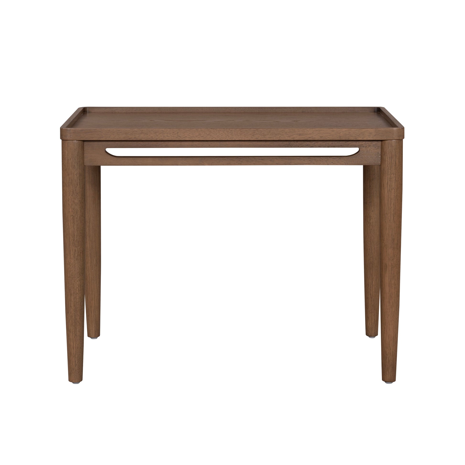 Make a statement with the Verona end table, designed for those seeking true transitional elegance. Perfectly blending minimalistic simplicity with transitional sophistication, this end table showcases smooth, soft curved details in a delectable medium brown oak finish. Sure to be an enduring staple in your home, the Verona end table is the ultimate in sophistication.