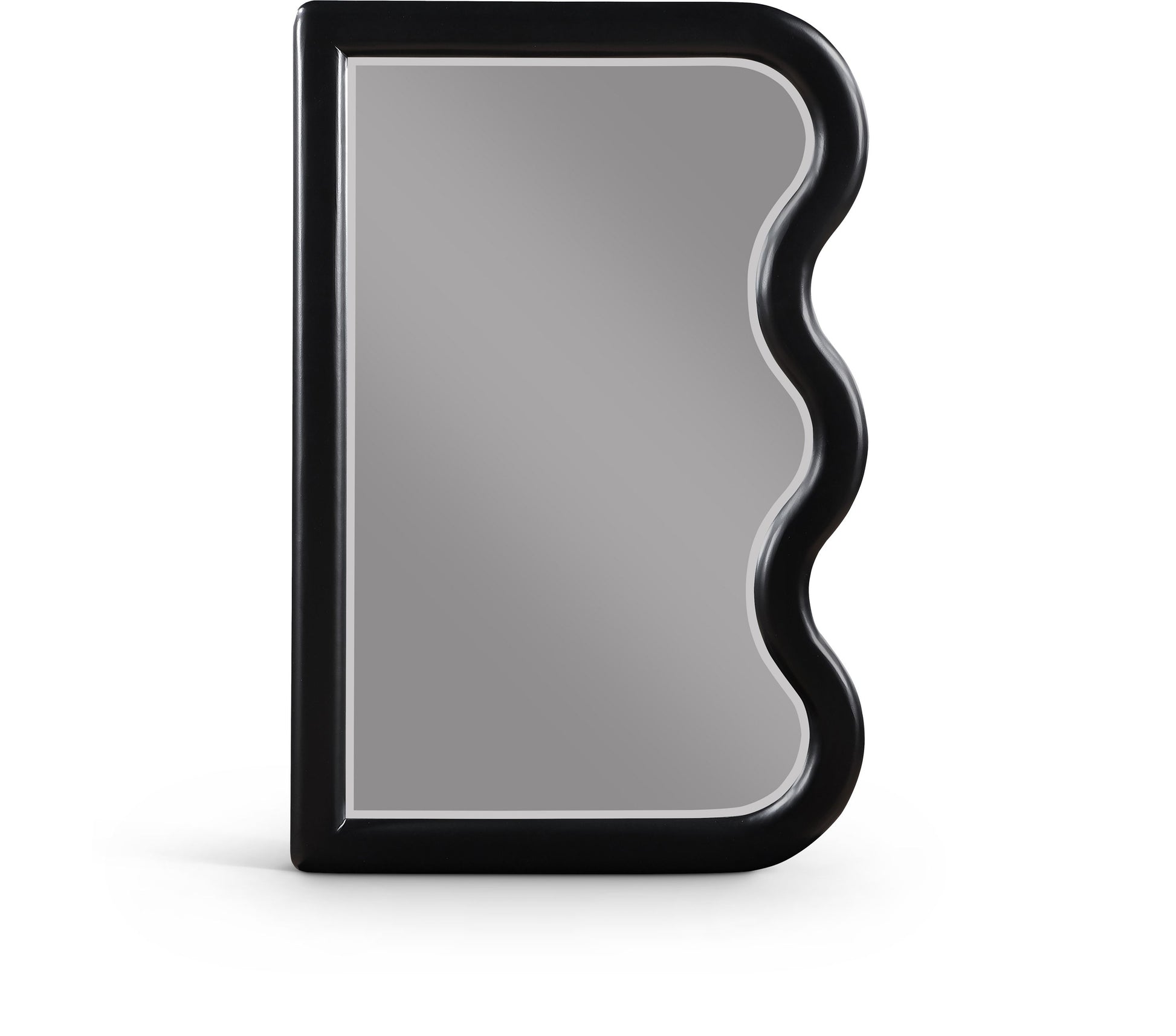 Make any wall a reflection of your good taste when you hang this Winnie black mirror for all to see. Its rich finish, crafted from a mix of solid wood and MDF, exudes timeless elegance. The art deco design adds a touch of vintage glamour to contemporary spaces, creating a focal point that captures attention. Perfect for adding depth and style to any room, this mirror blends classic craftsmanship with modern sensibility, making it a must-have for sophisticated interiors.