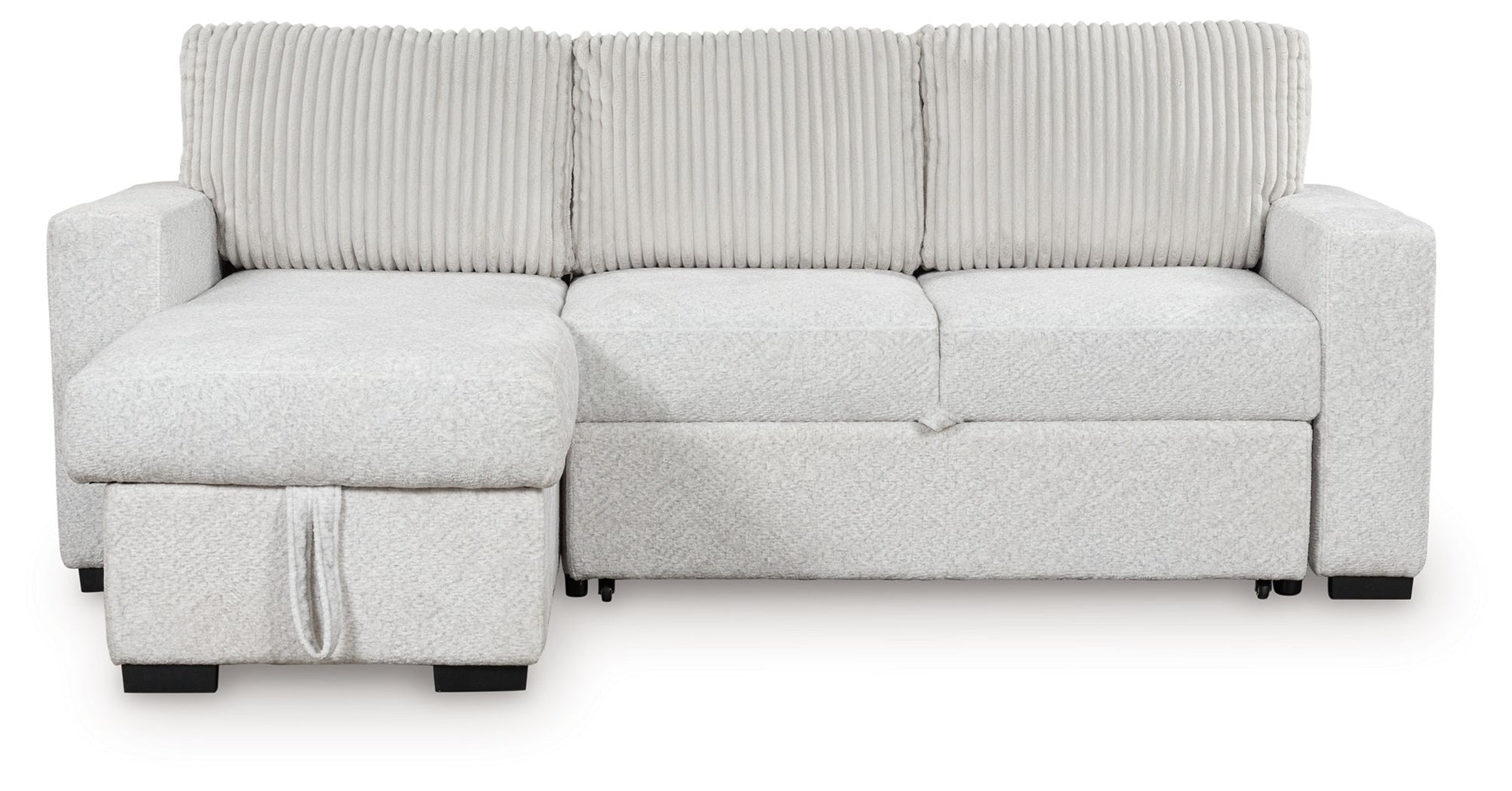 - Includes 2 pieces: left-arm facing corner chaise with storage and pop up sleeper with drop down table