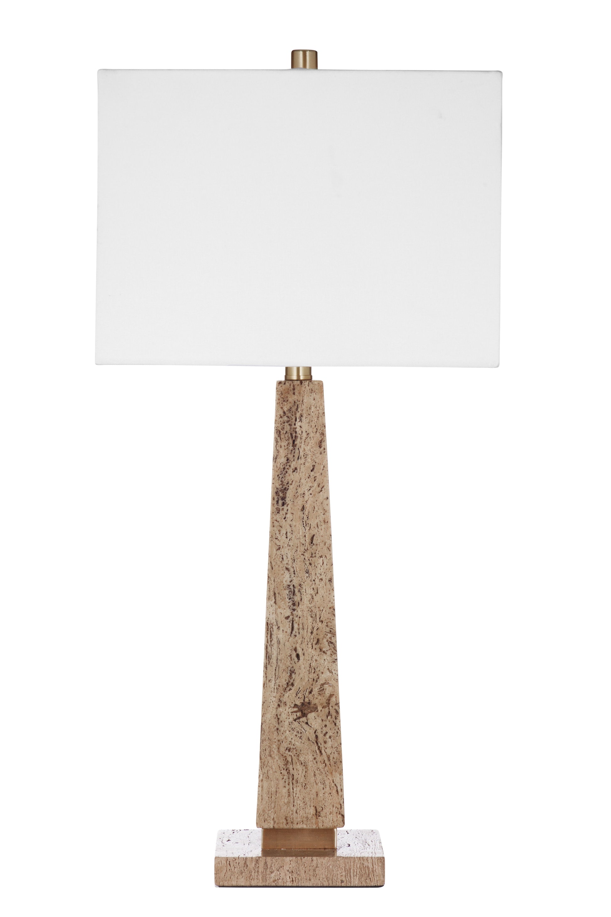 The Zari Table Lamp embodies a modern boho aesthetic, featuring a travertine base adorned with elegant brass accents. Its unique blend of natural textures and metallic details adds a touch of sophistication to any space. Topped with a rectangular shade, this lamp exudes style and character, making it a versatile addition to your home decor.